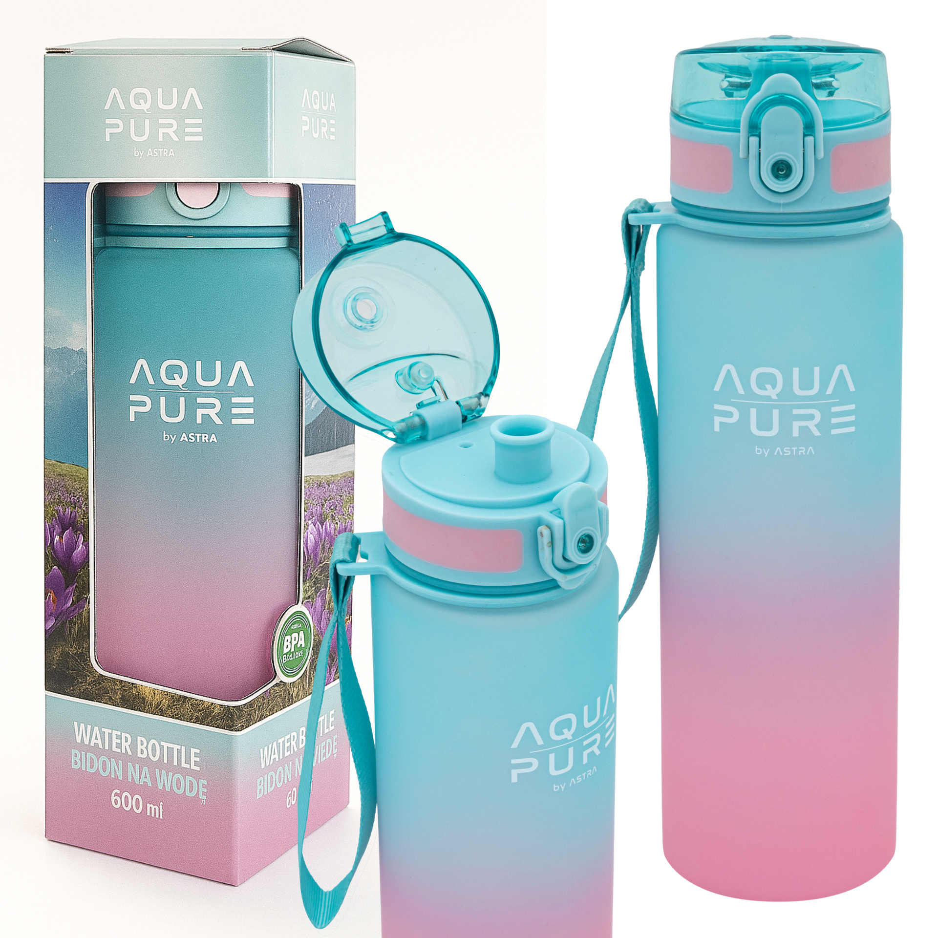 Bidon na wodę butelka dziecka tritan 600ml miętowy BPA FREE AQUA PURE ASTRA