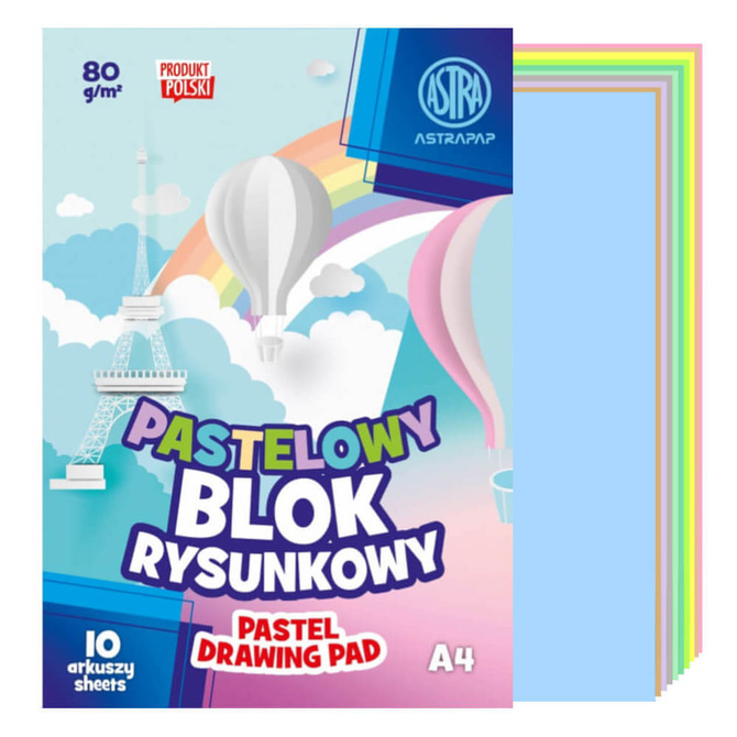 Blok rysunkowy pastelowy A4 10 kartek 80g/m2 ASTRA