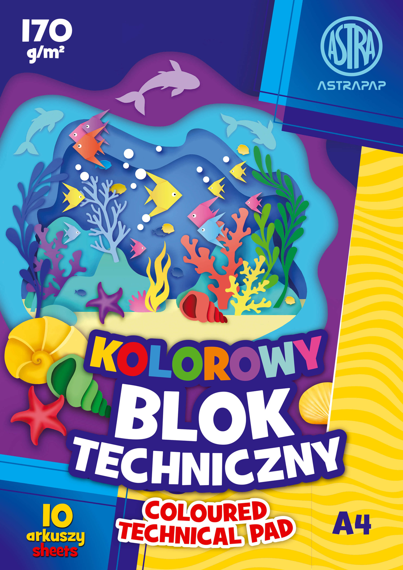 Blok techniczny kolorowy A4 10 kartek 170g/m2 ASTRA