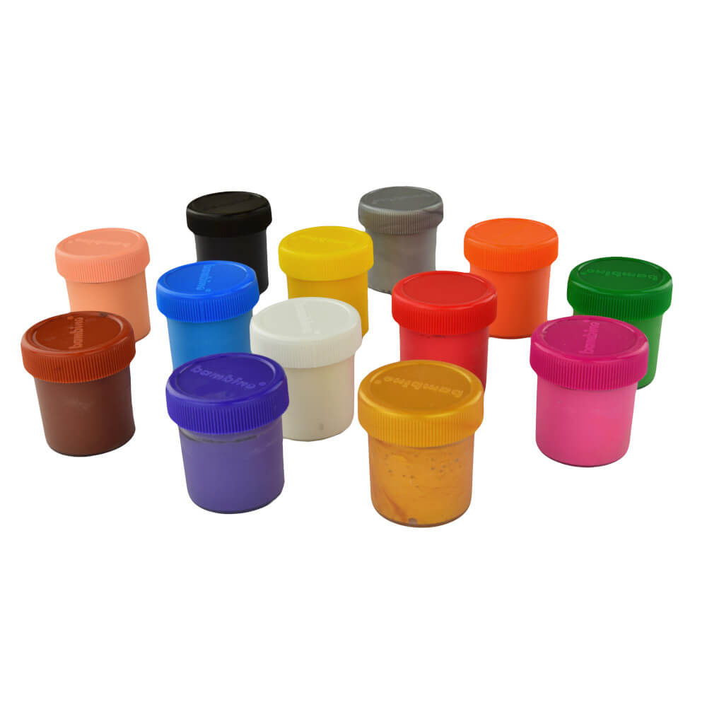 Farby plakatowe szkolne 13 kolorów x 20ml złota srebrna BAMBINO