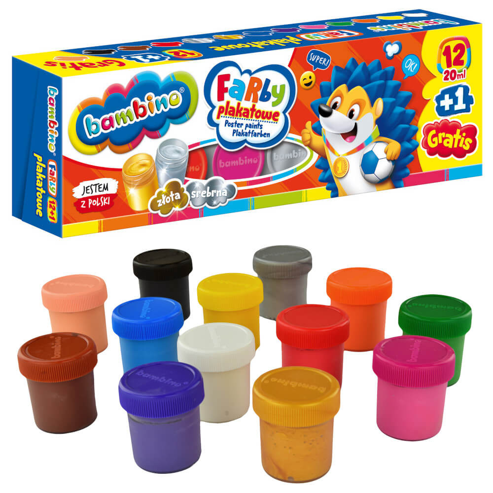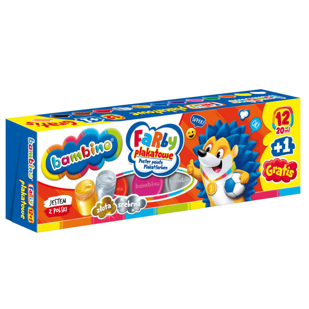 🎨 Farby plakatowe BAMBINO – 12 kolorów + 1 cielista GRATIS