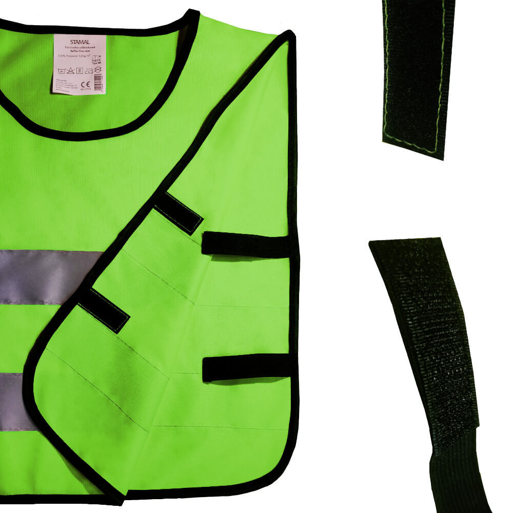 - Materiał: zielony fluorescencyjny poliester 120g/m2