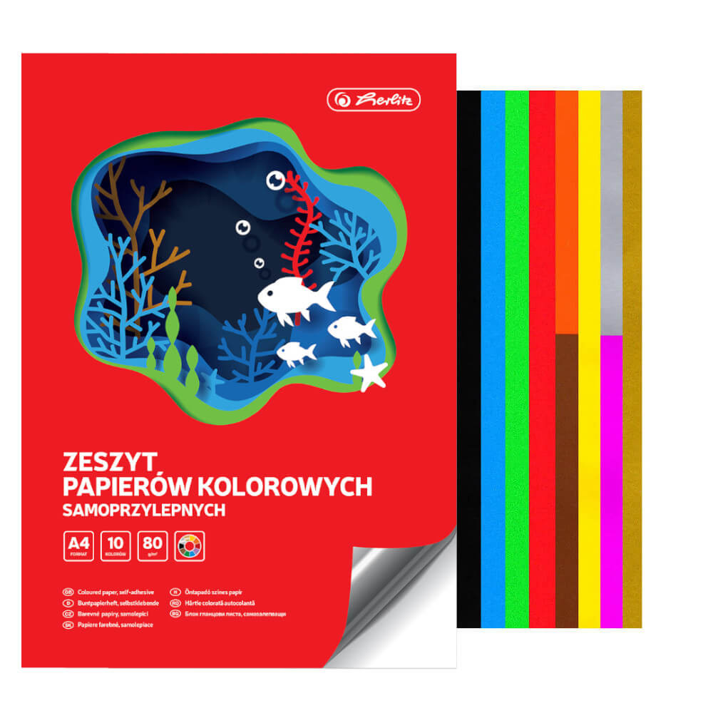 Kolorowy papier samoprzylepny wycinanka A4 10 kolorów 80g/m2 HERLITZ