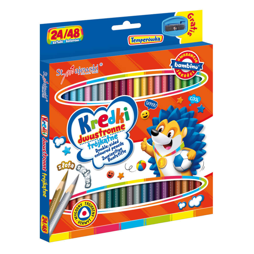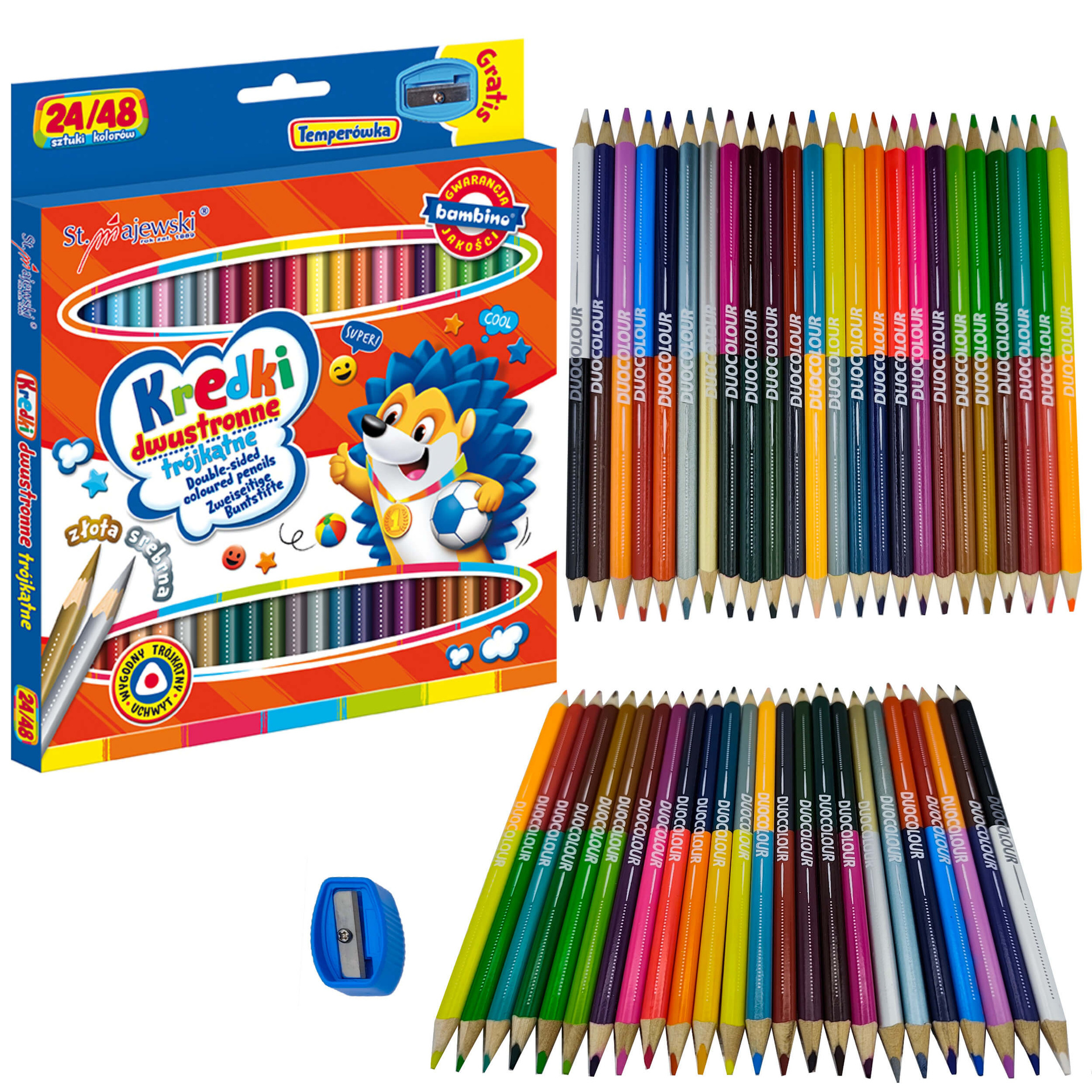 Kredki ołówkowe dwustronne trójkątne 24/48 kolorów +temperówka BAMBINO