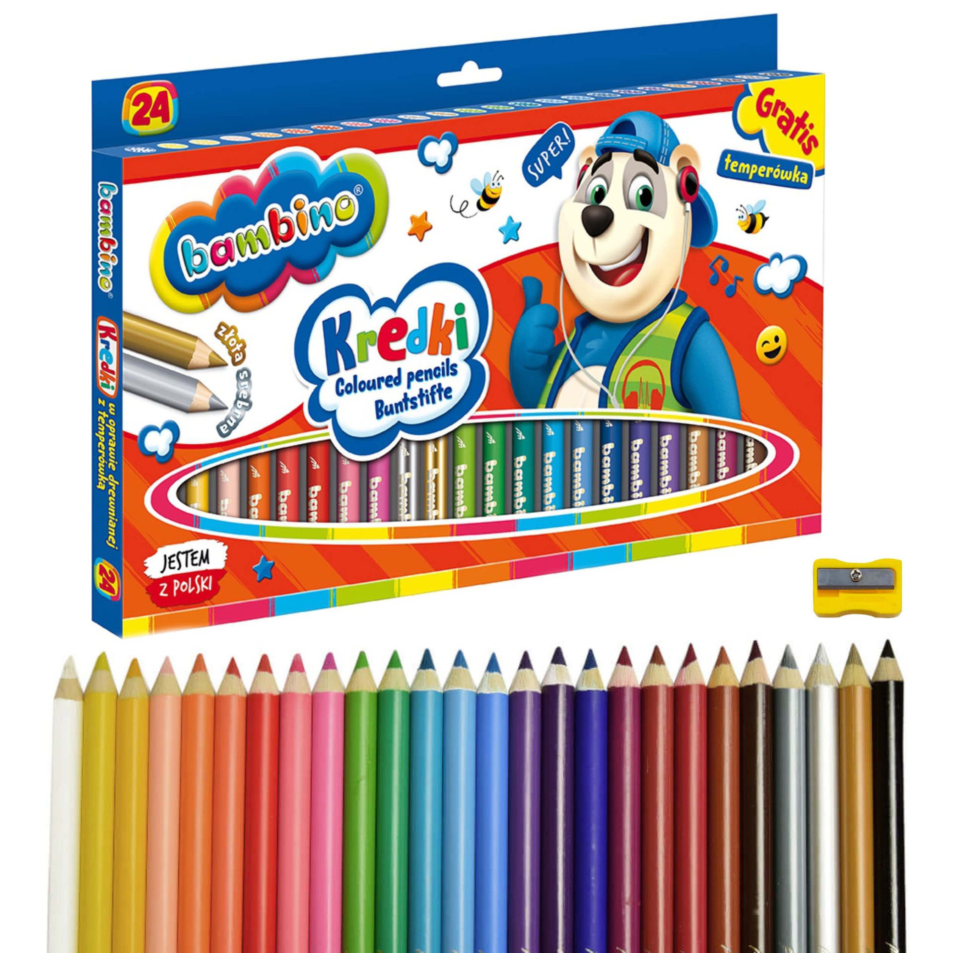 Kredki ołówkowe grube Jumbo 24 kolorów + temperówka BAMBINO