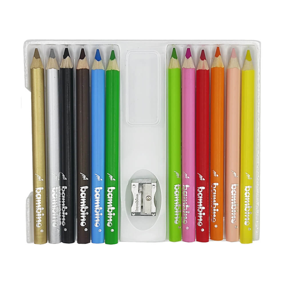 🌈 12 intensywnych kolorów – w zestawie także kredka złota i srebrna
