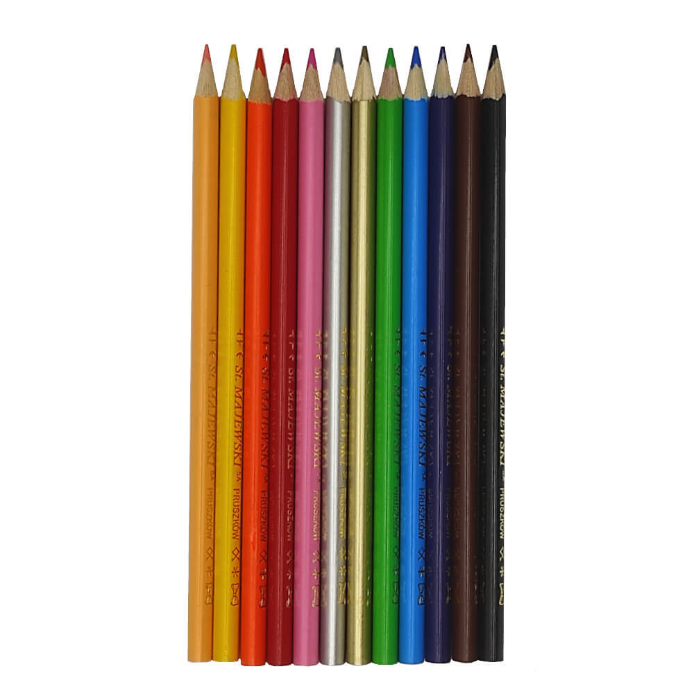 🎨 12 intensywnych kolorów – w tym kredki w kolorze złotym i srebrnym
