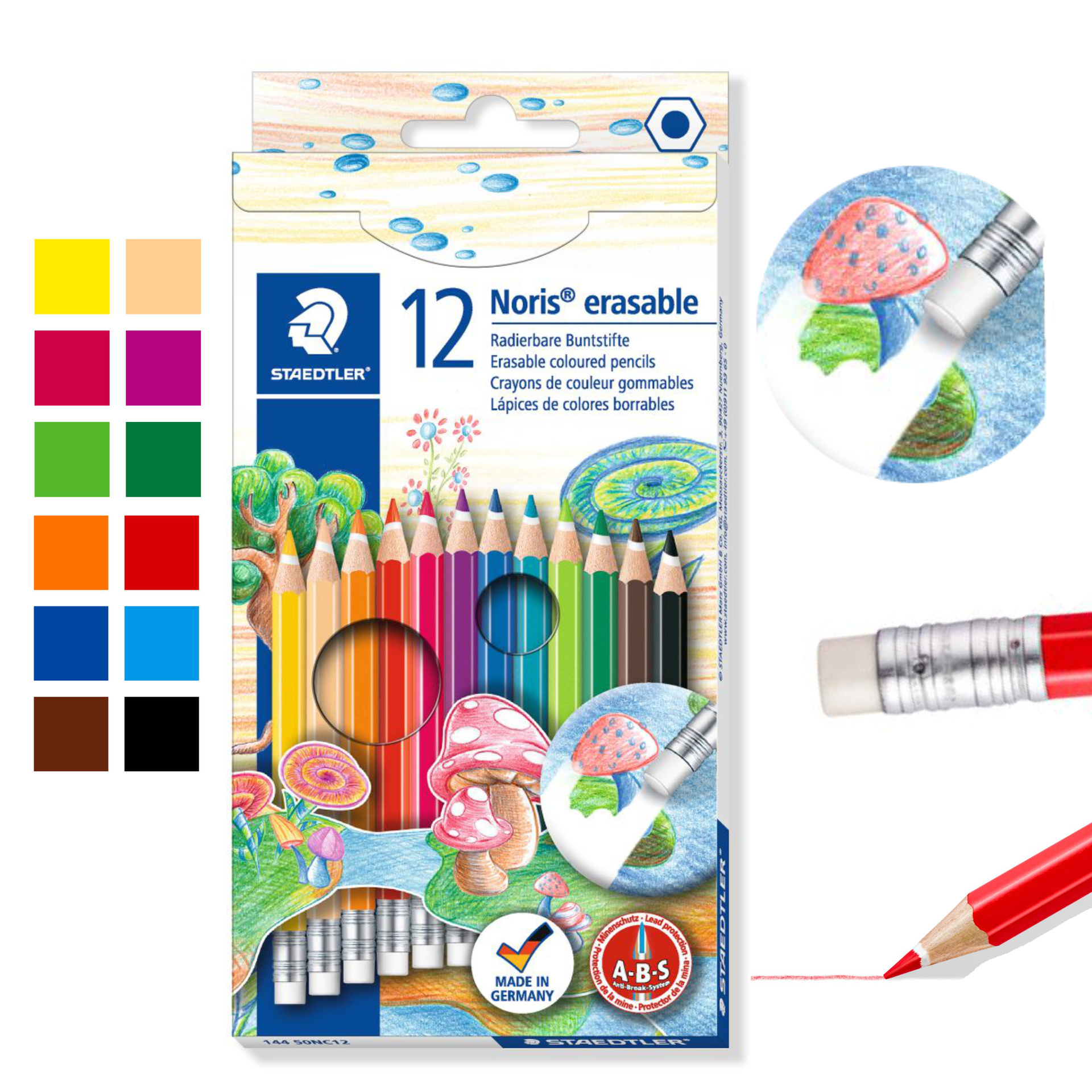 Kredki ołówkowe z gumką ścieralne wymazywalne 12kol Noris Club STAEDTLER