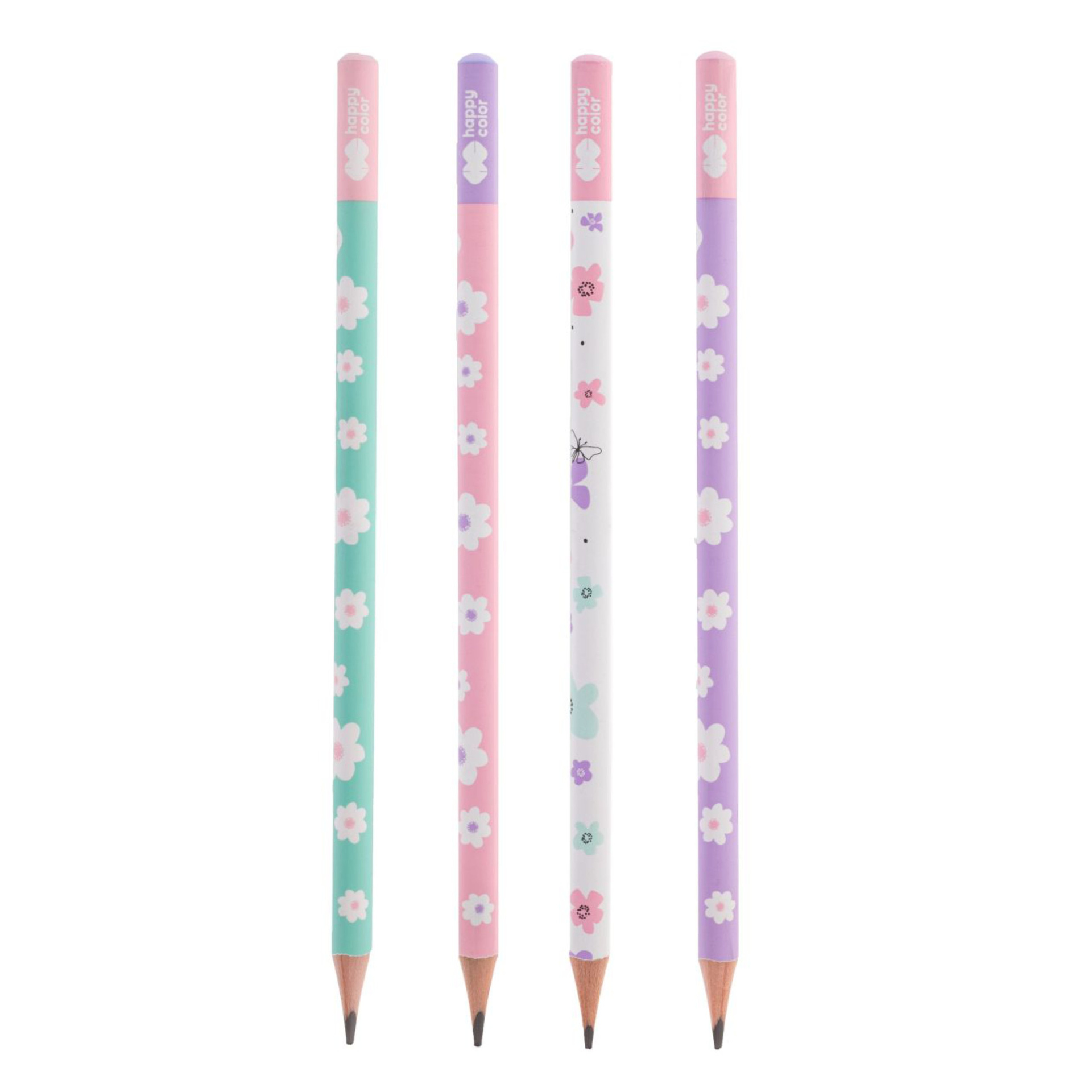 Ołówek trójkątny 2B kwiaty Pearl Flower 24szt HAPPY COLOR