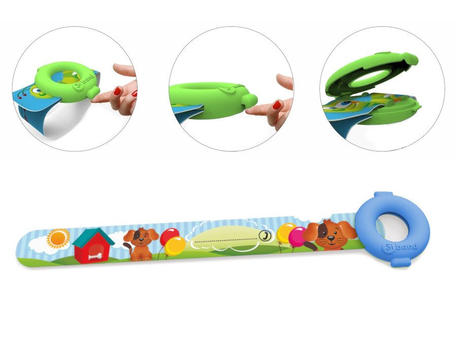 - Dzięki temu opaskę można swobodnie zdejmować z nadgarstka dziecka a potem zakładać ponownie.