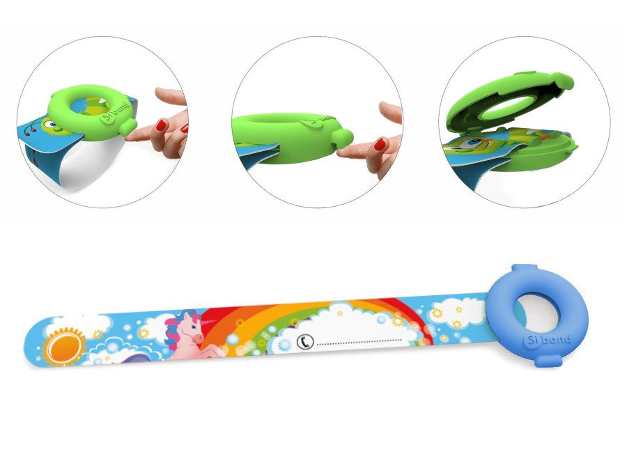 - Dzięki temu opaskę można swobodnie zdejmować z nadgarstka dziecka a potem zakładać ponownie.