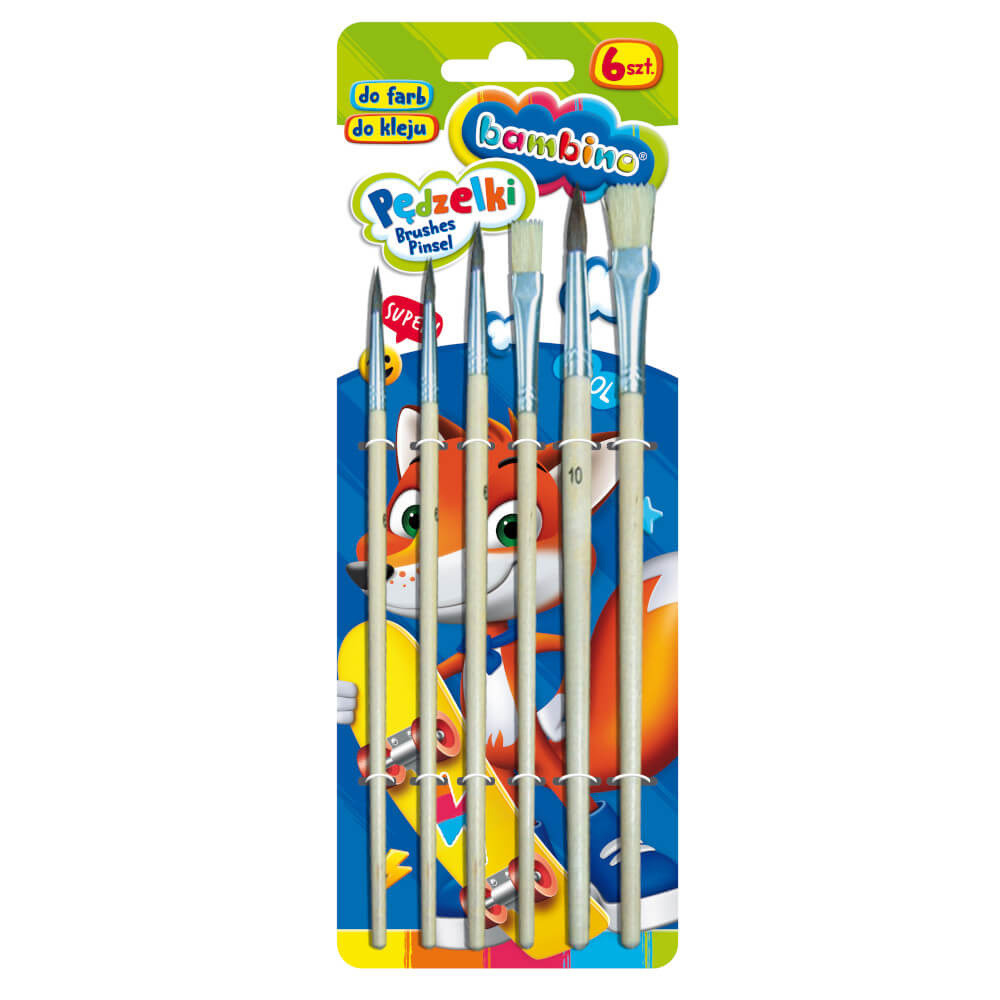 Pędzle pędzelki szkolne 2/4/6/8/10/12 6 sztuk BAMBINO