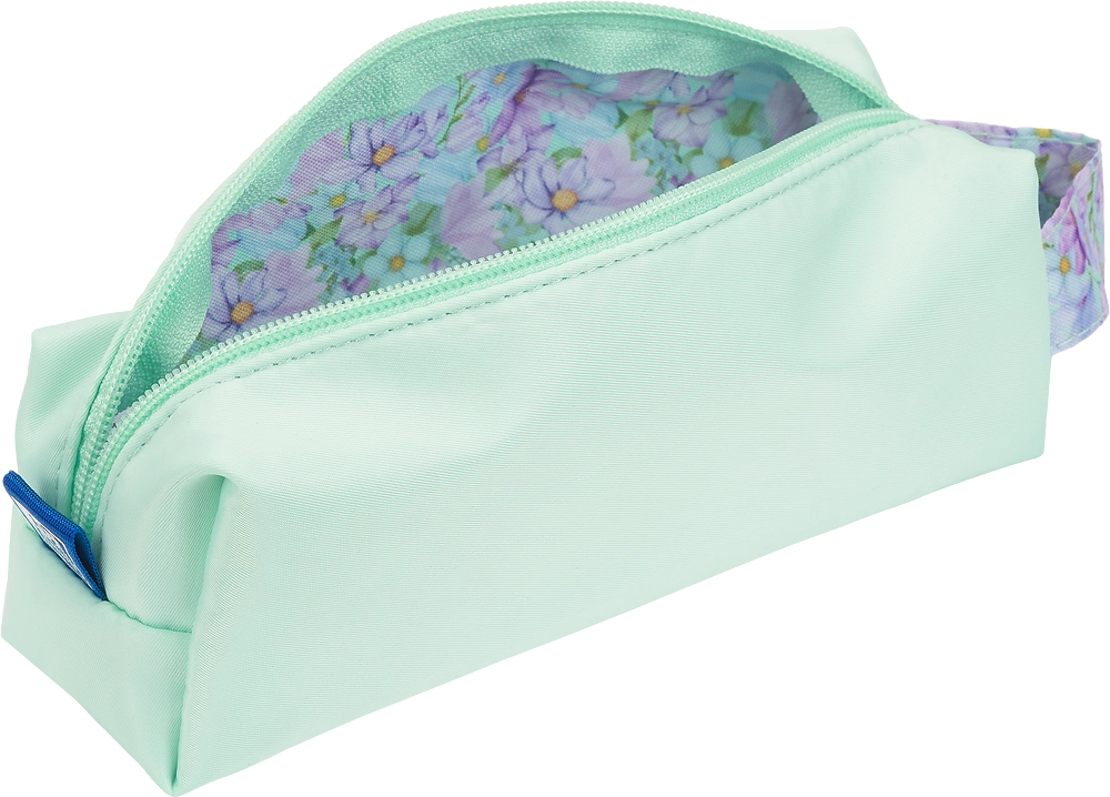Piórnik Flowers w miętowym kolorze to połączenie delikatności i praktycznego stylu. Zewnętrzny materiał w pastelowym odcieniu przyciąga wzrok subtelnością, a florystyczna podszewka wewnątrz dodaje całości wyjątkowego uroku. Duża pojemność i lekkość sprawiają, że piórnik świetnie sprawdzi się w szkole, w podróży lub jako poręczna kosmetyczka w codziennym użytkowaniu.