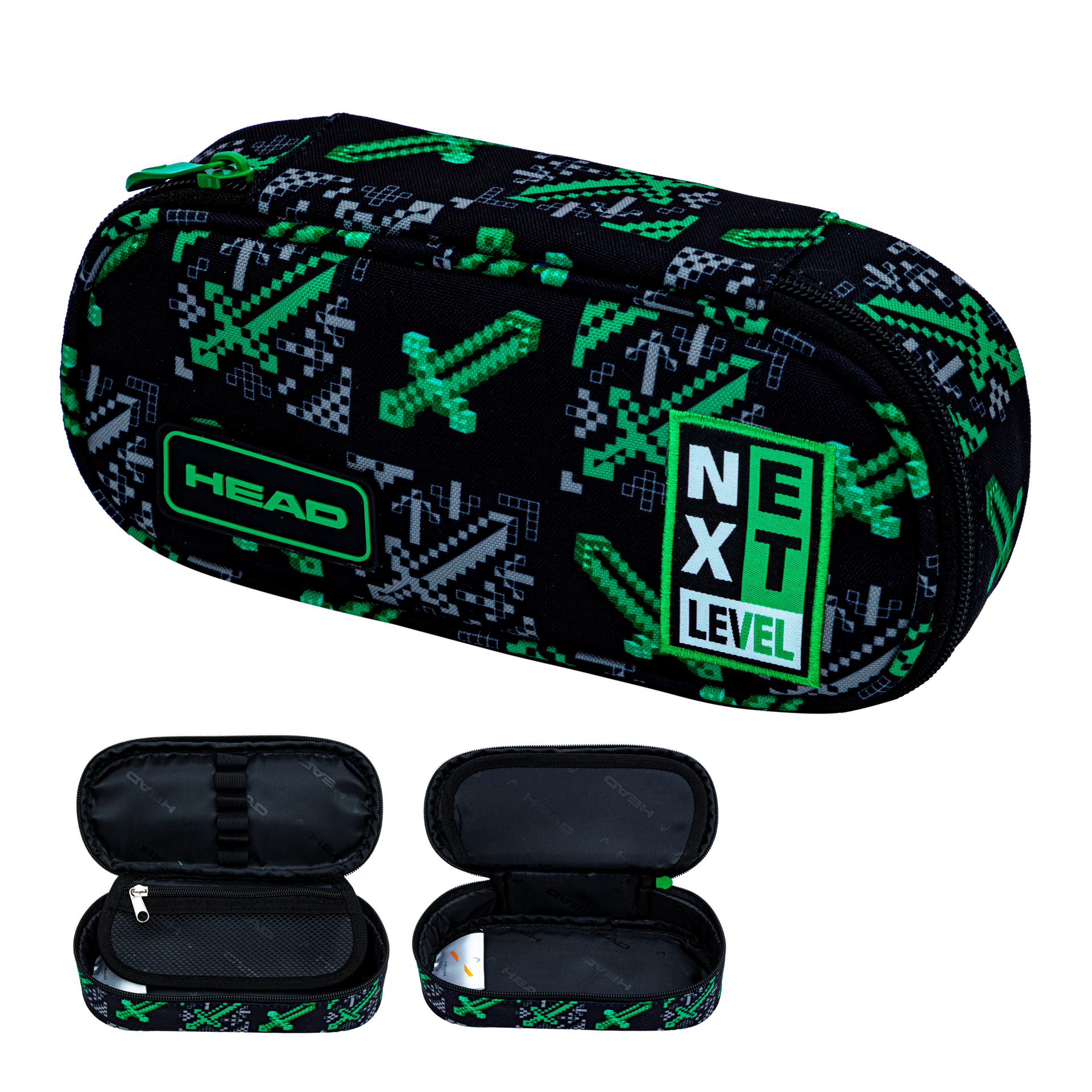 Pojemny piórnik HEAD z serii Next Level to idealne rozwiązanie dla fanów pikselowego stylu i nowoczesnego designu. Jego dynamiczny wzór z mieczami w stylu gier komputerowych wyróżnia się na tle klasycznych modeli, a solidne wykonanie zapewnia długotrwałe użytkowanie.