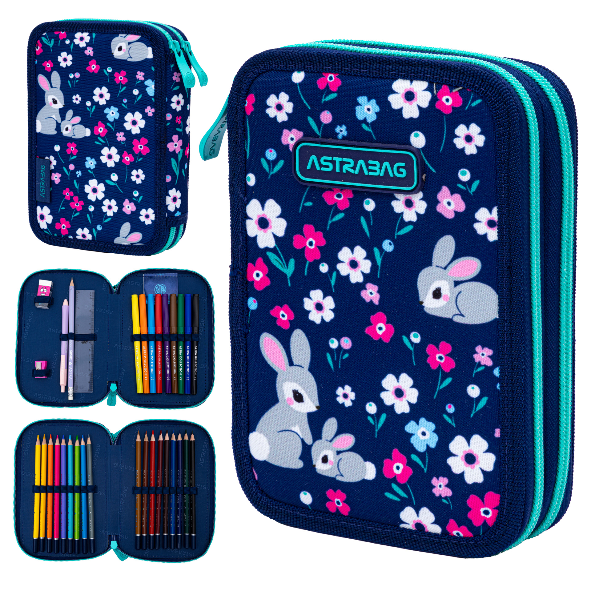 Piórnik podwójny dwukomorowy z wyposażeniem 32el Baby Bunny AC21 ASTRA