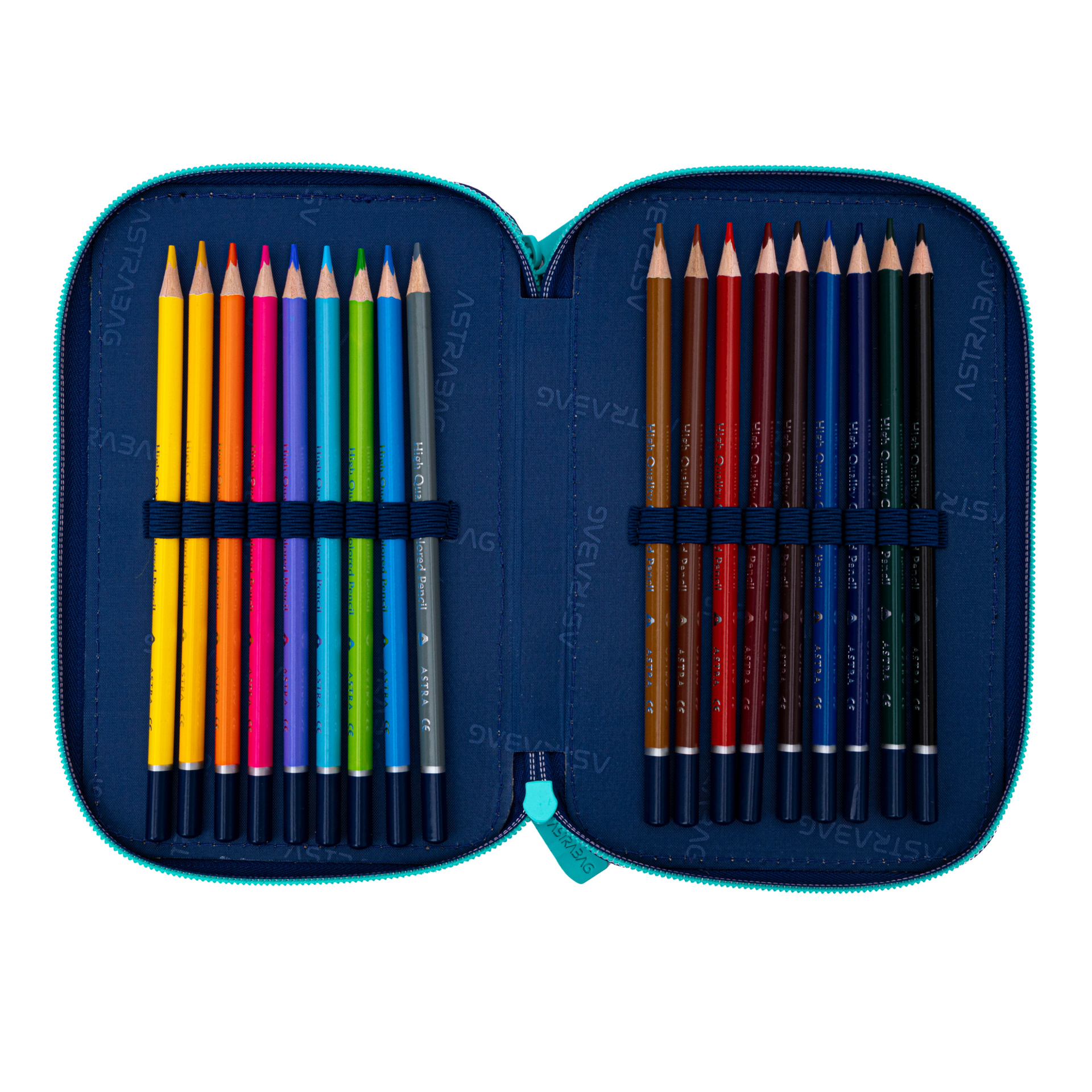 Uroczy piórnik podwójny Astra z kolekcji z króliczkami to praktyczne i estetyczne rozwiązanie dla najmłodszych uczniów. Wyposażony aż w 32 elementy, zawiera wszystko, co potrzebne do codziennych zajęć: kredki, flamastry, ołówki, linijkę, temperówkę i więcej! Dzięki podwójnym komorom z wygodnymi gumkami każdy przybór ma swoje miejsce. Idealny do szkoły podstawowej, szczególnie dla dzieci z klas 1–3.