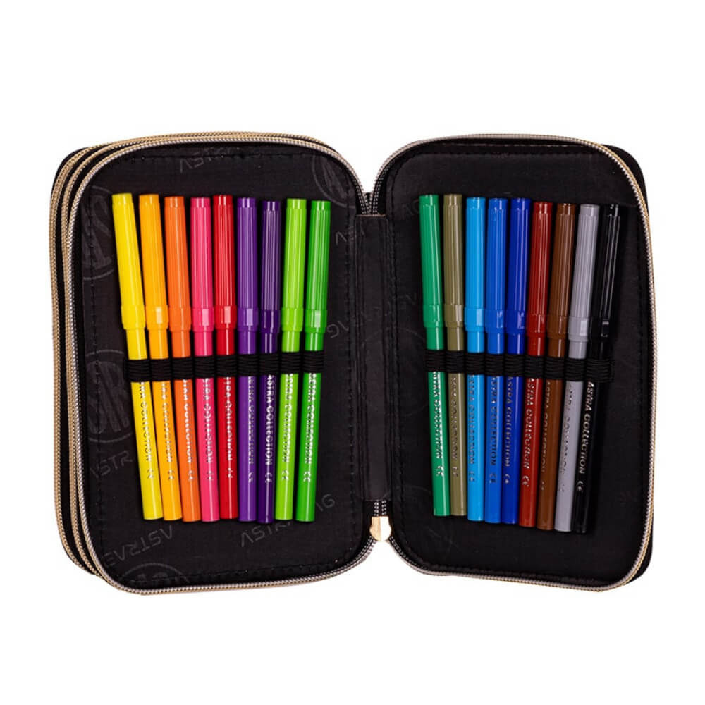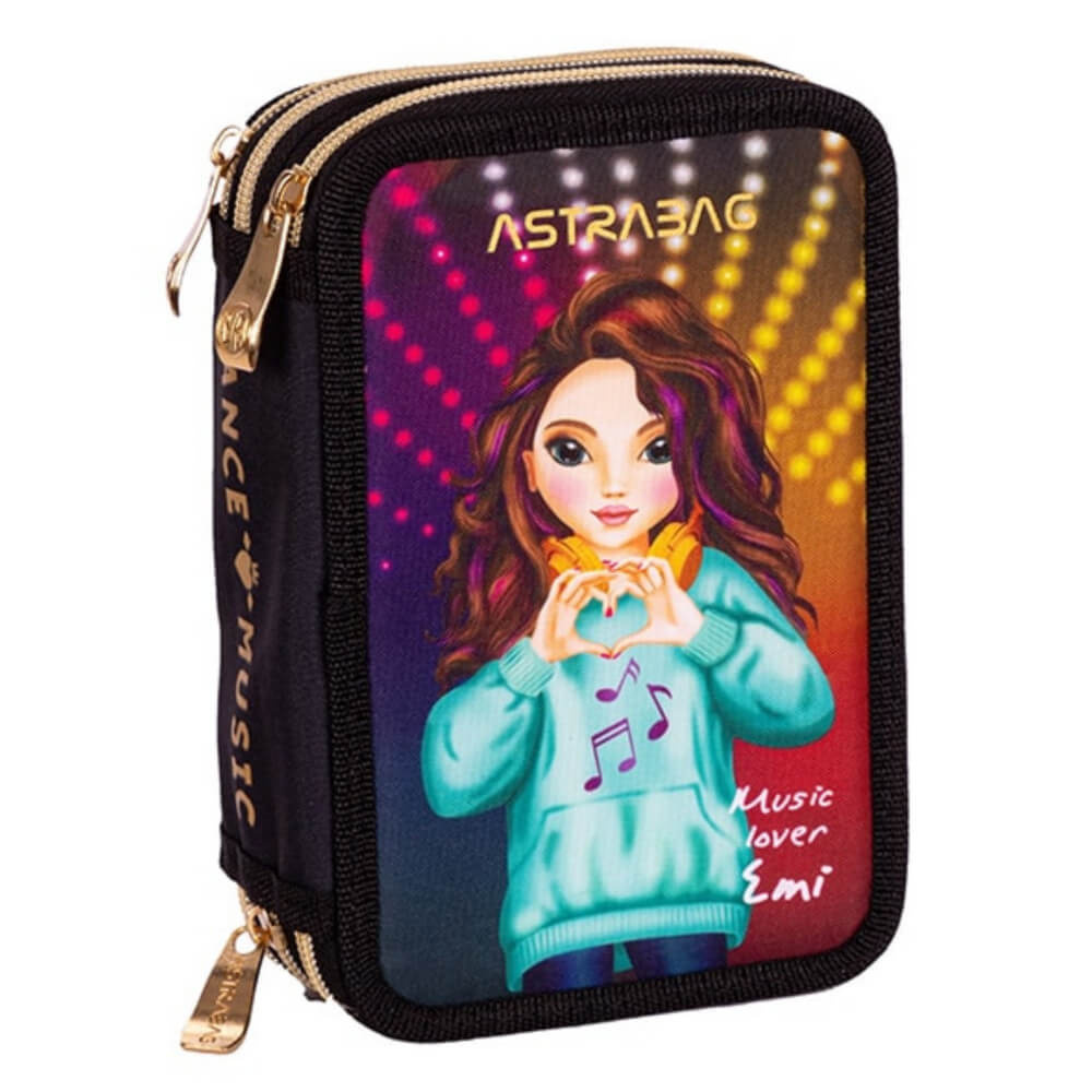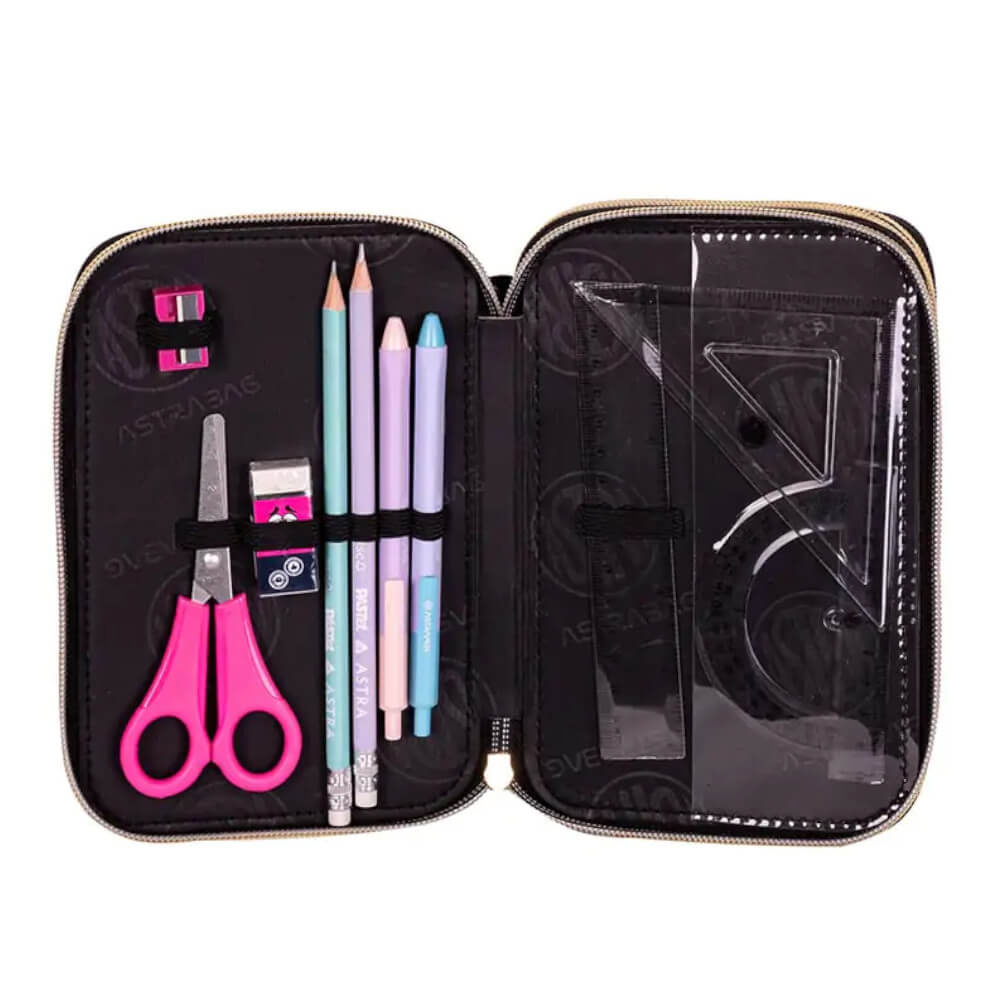 Piórnik Jumbo Astrabag, szkolny trzykomorowy potrójny z wyposażeniem 46 elementów Top Teens Emi, AC31