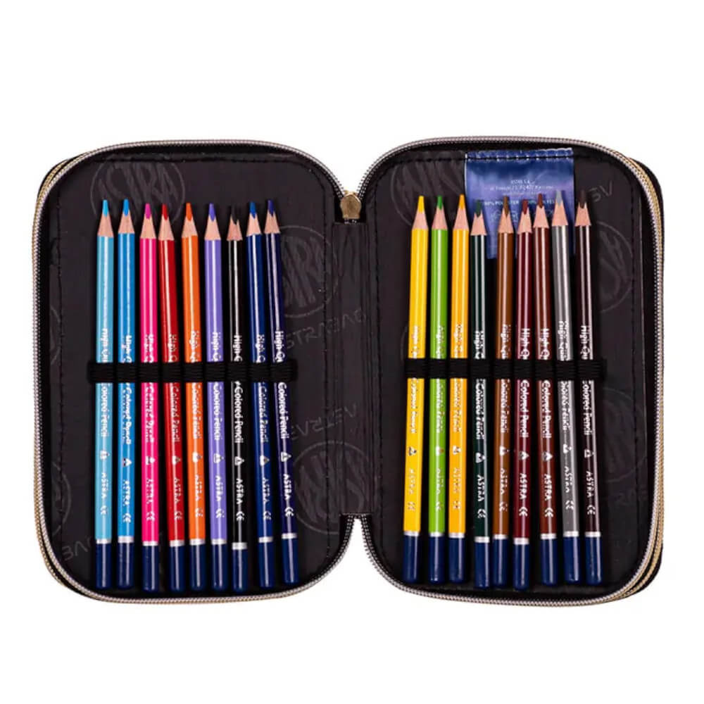Piórnik potrójny szkolny z wyposażeniem 46el Jumbo Top Teens Emi ASTRA