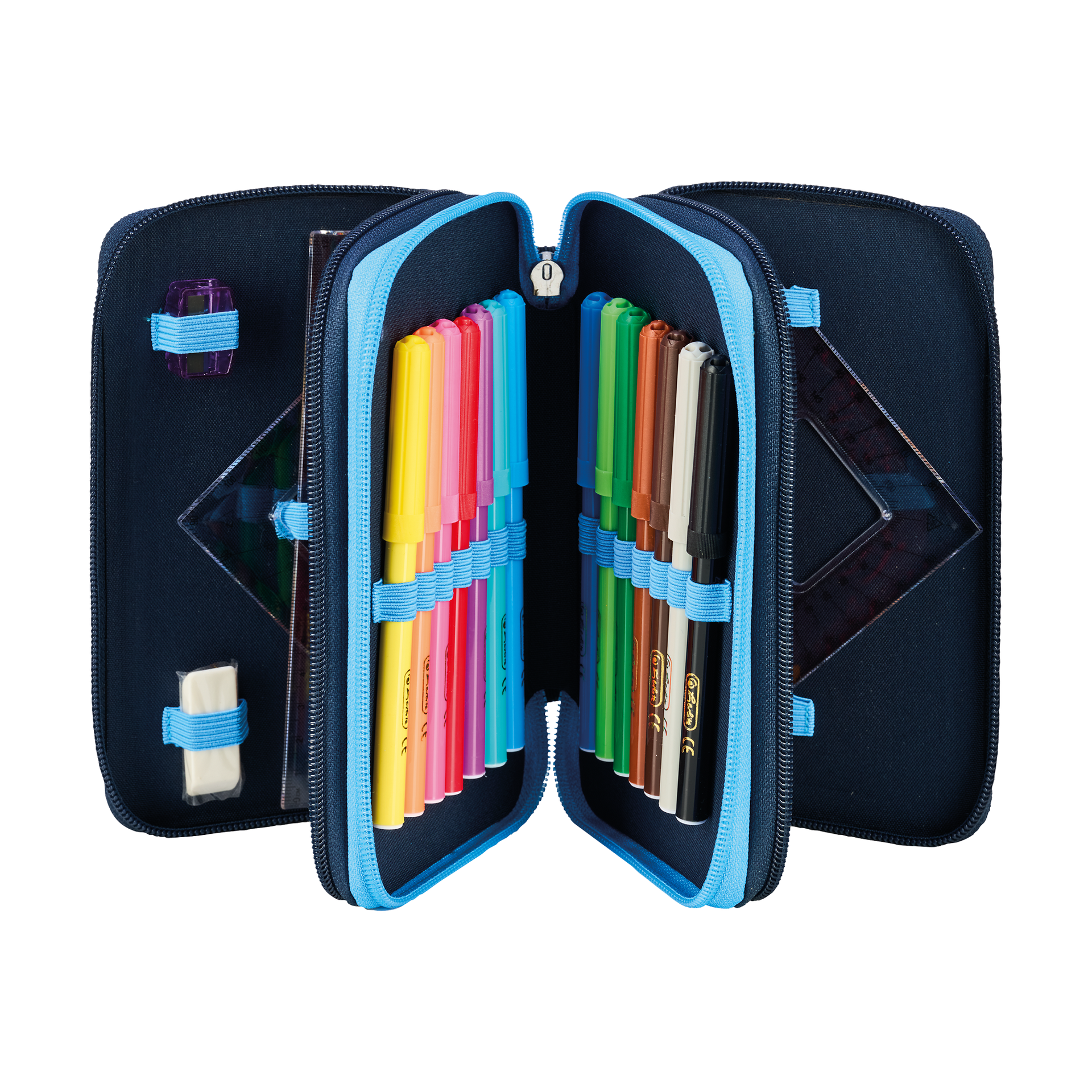 Piórnik potrójny trzykomorowy z wyposażeniem 31el kosmonauta Cosmic HERLITZ