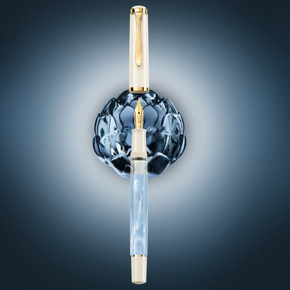 - Korpus pióra wykonany jest z pastelowo-błękitnej żywicy z perłowymi białymi refleksami