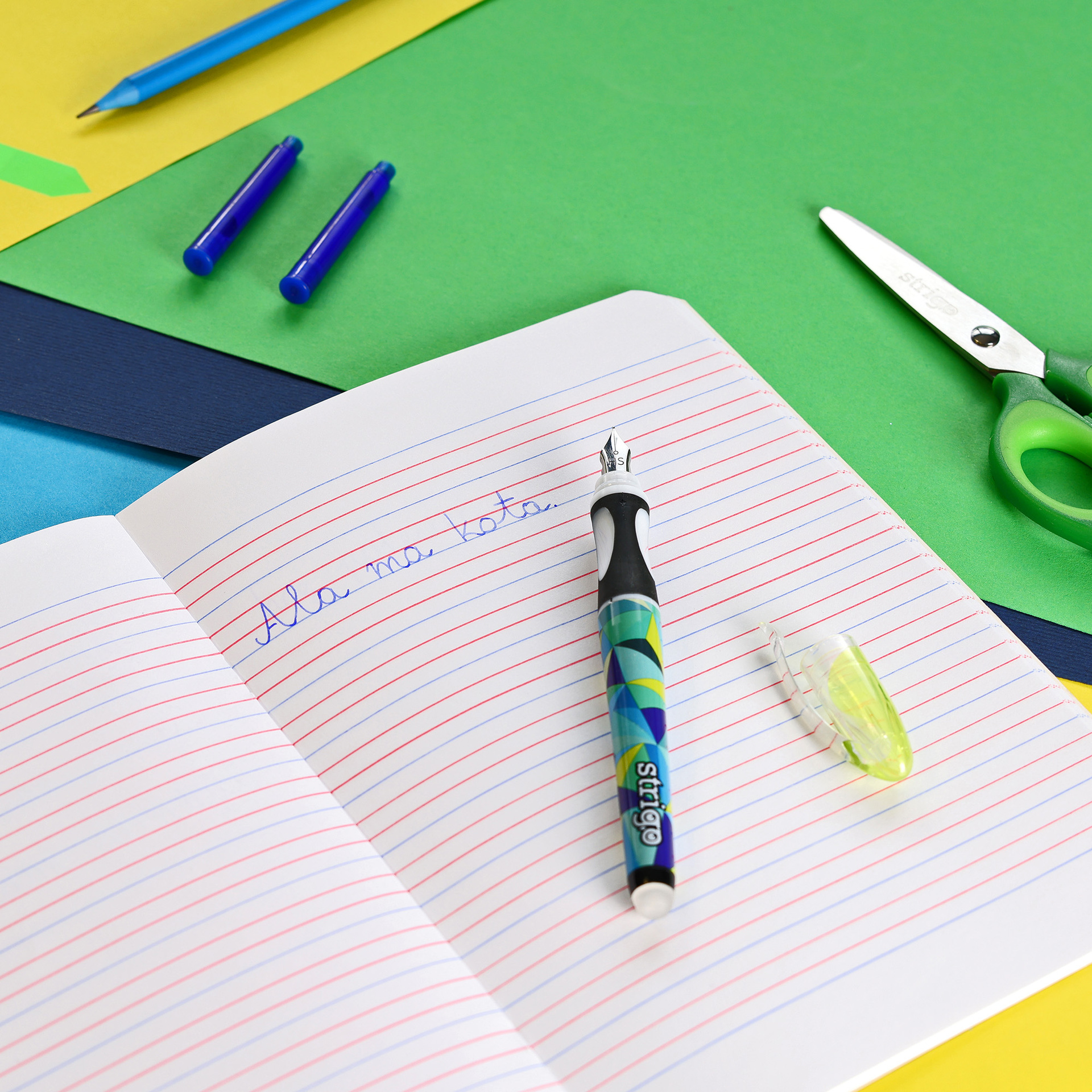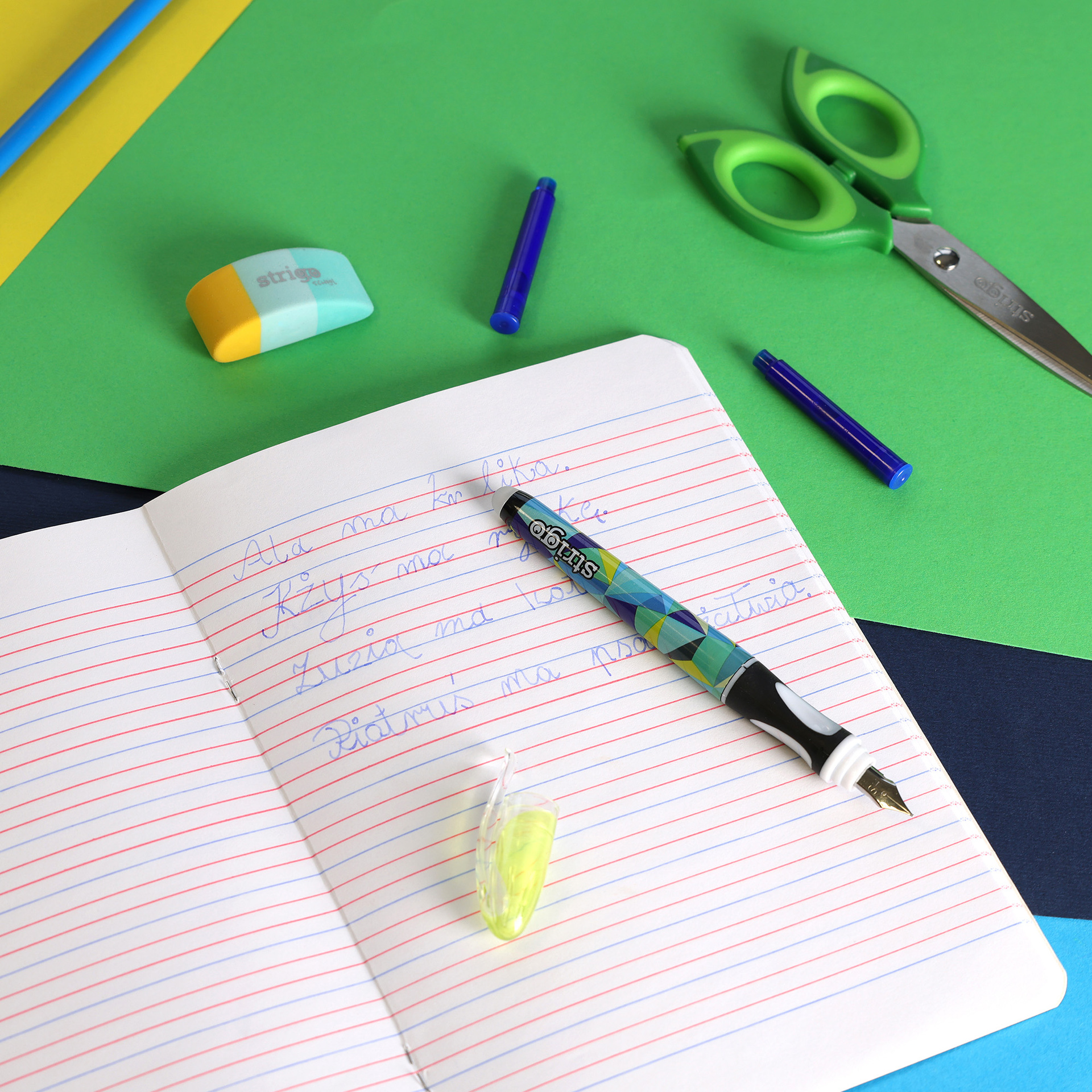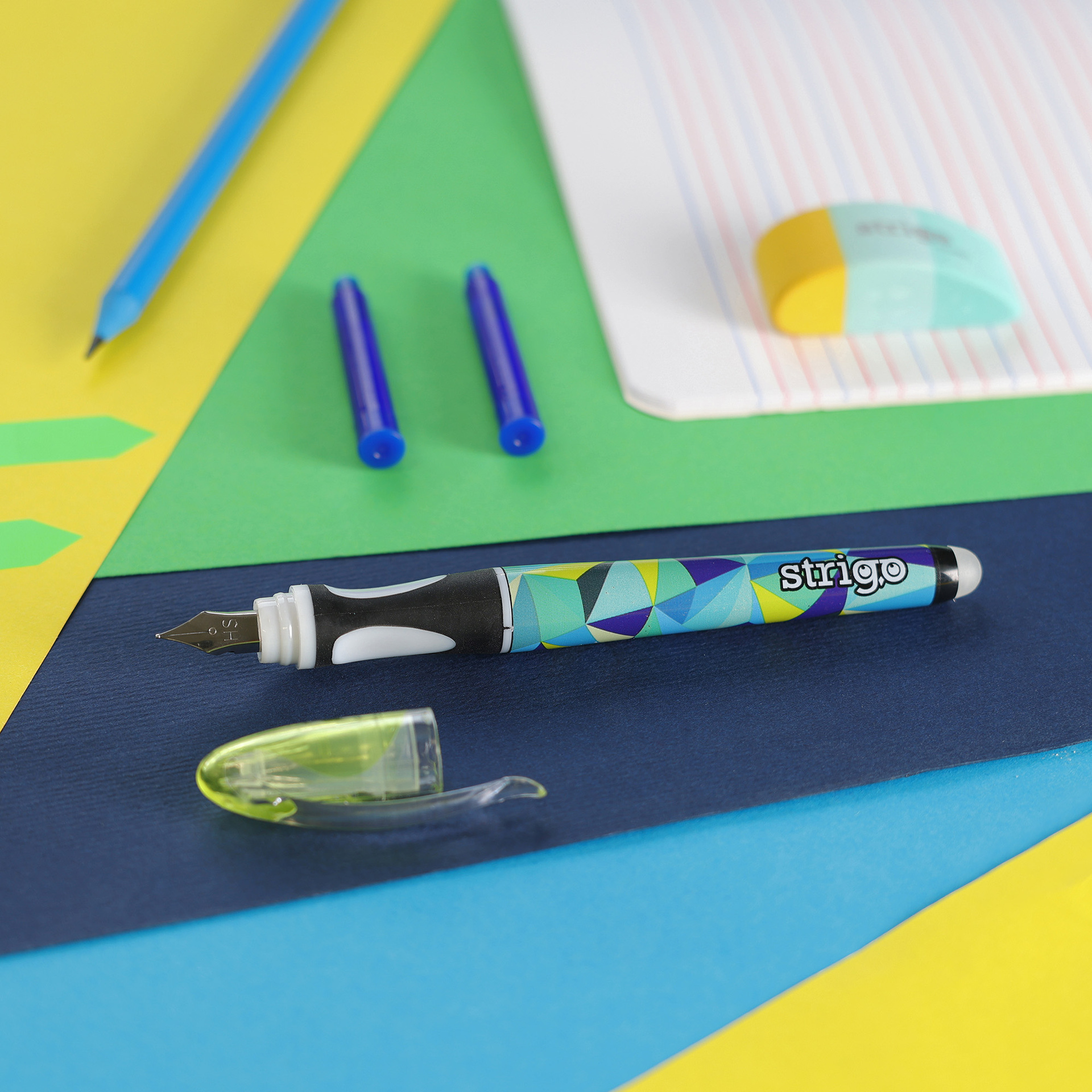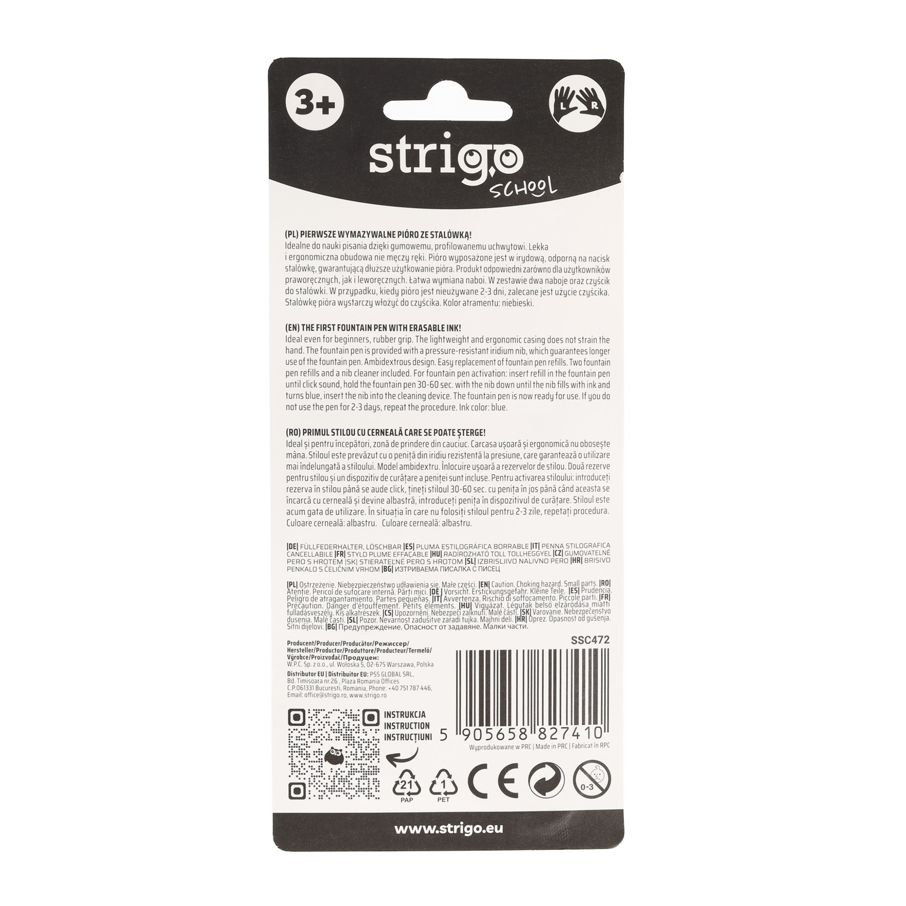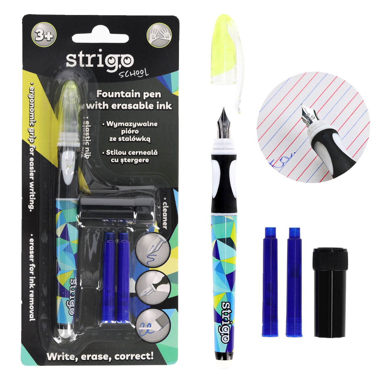 Pióro Strigo wymazywalne, ścieralne dla dzieci do nauki piania w zestawie 2 naboje + czyścik do stalówki