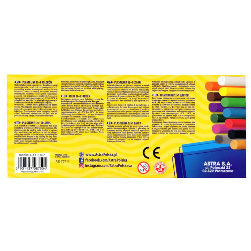Plastelina miękka okrągła 13kol 12 + 1 złoty ASTRA