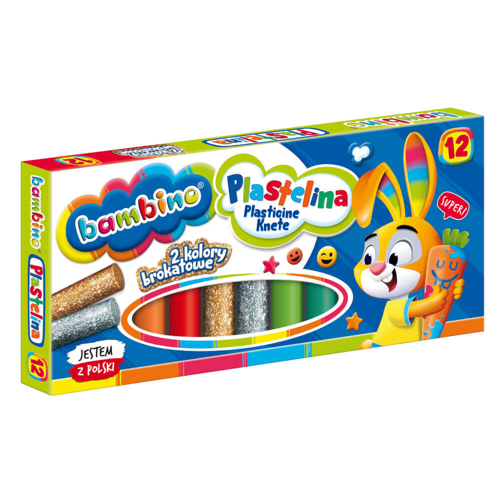 🟦 Plastelina BAMBINO – 12 kolorów w tym 2 brokatowe