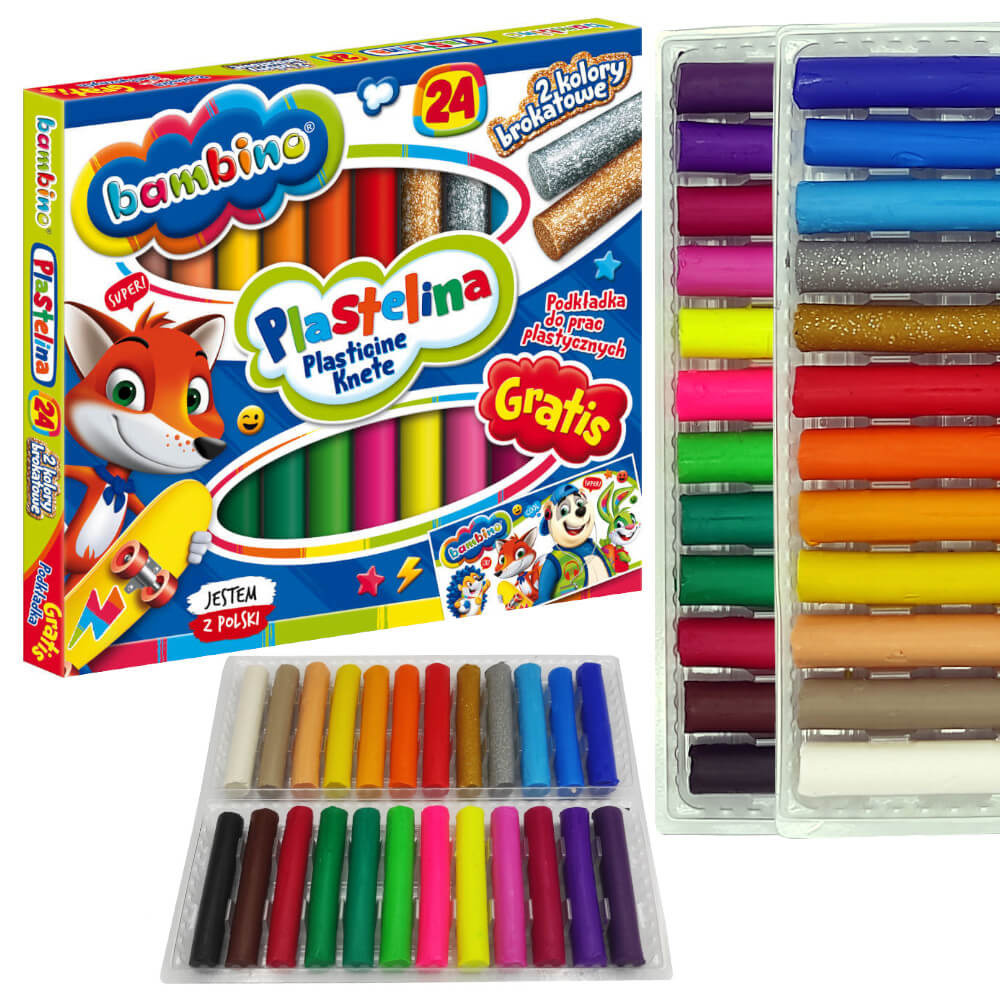Plastelina szkolna 24 kolory +podkładka do prac plastycznych BAMBINO