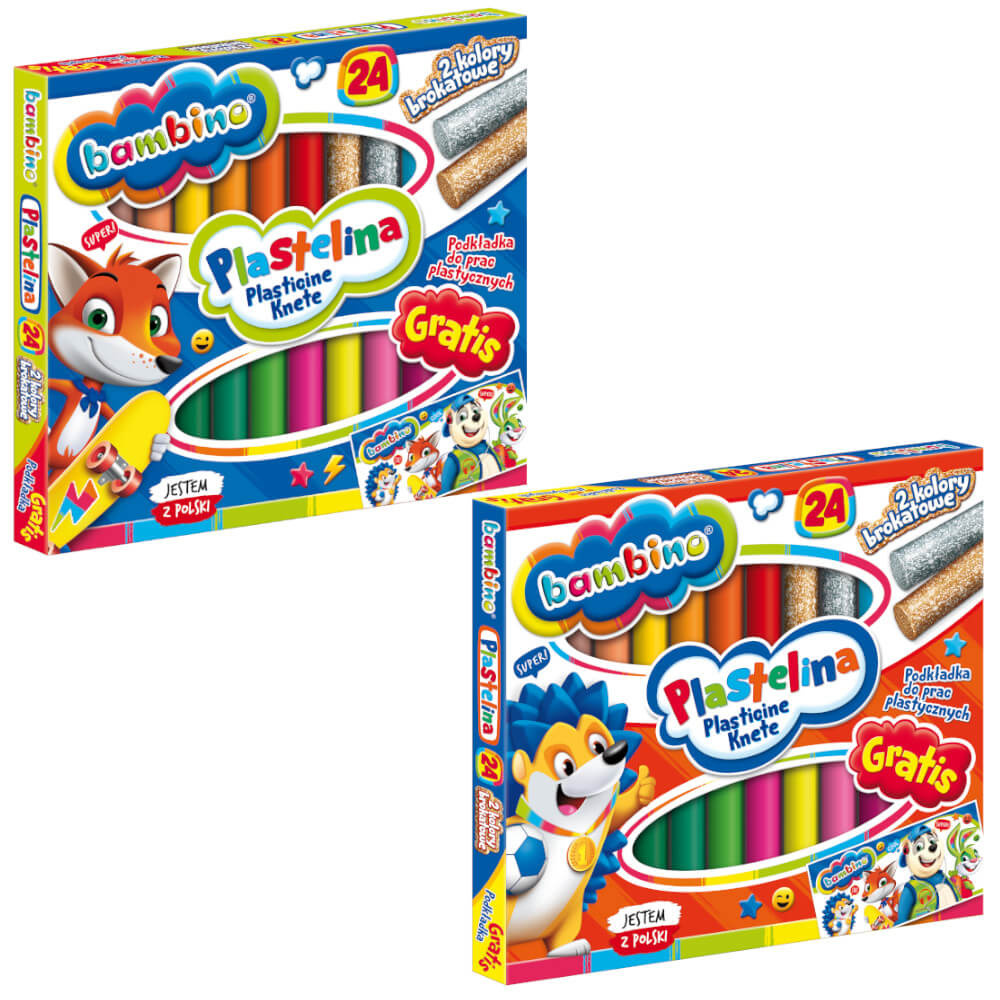 Plastelina Bambino to doskonały sposób na rozwijanie kreatywności, wyobraźni i zdolności manualnych dziecka – teraz w jeszcze większym zestawie kolorów!