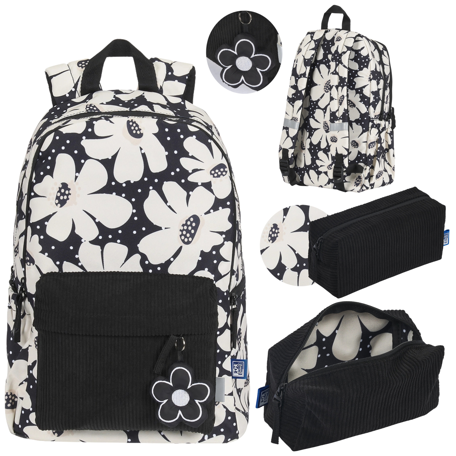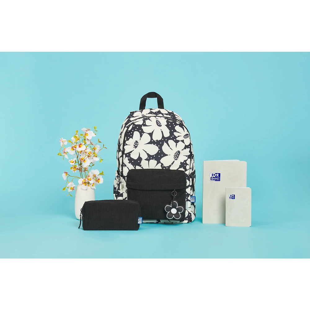 Plecak szkolny młodzieżowy 26l+ piórnik czarny kwiatki sztruks Bloom OXFORD