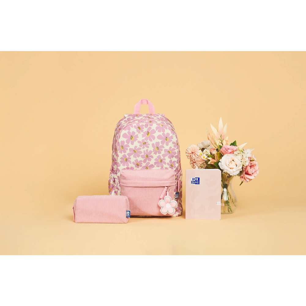 Plecak szkolny młodzieżowy 26l+ piórnik różowy kwiatki sztruks Bloom OXFORD
