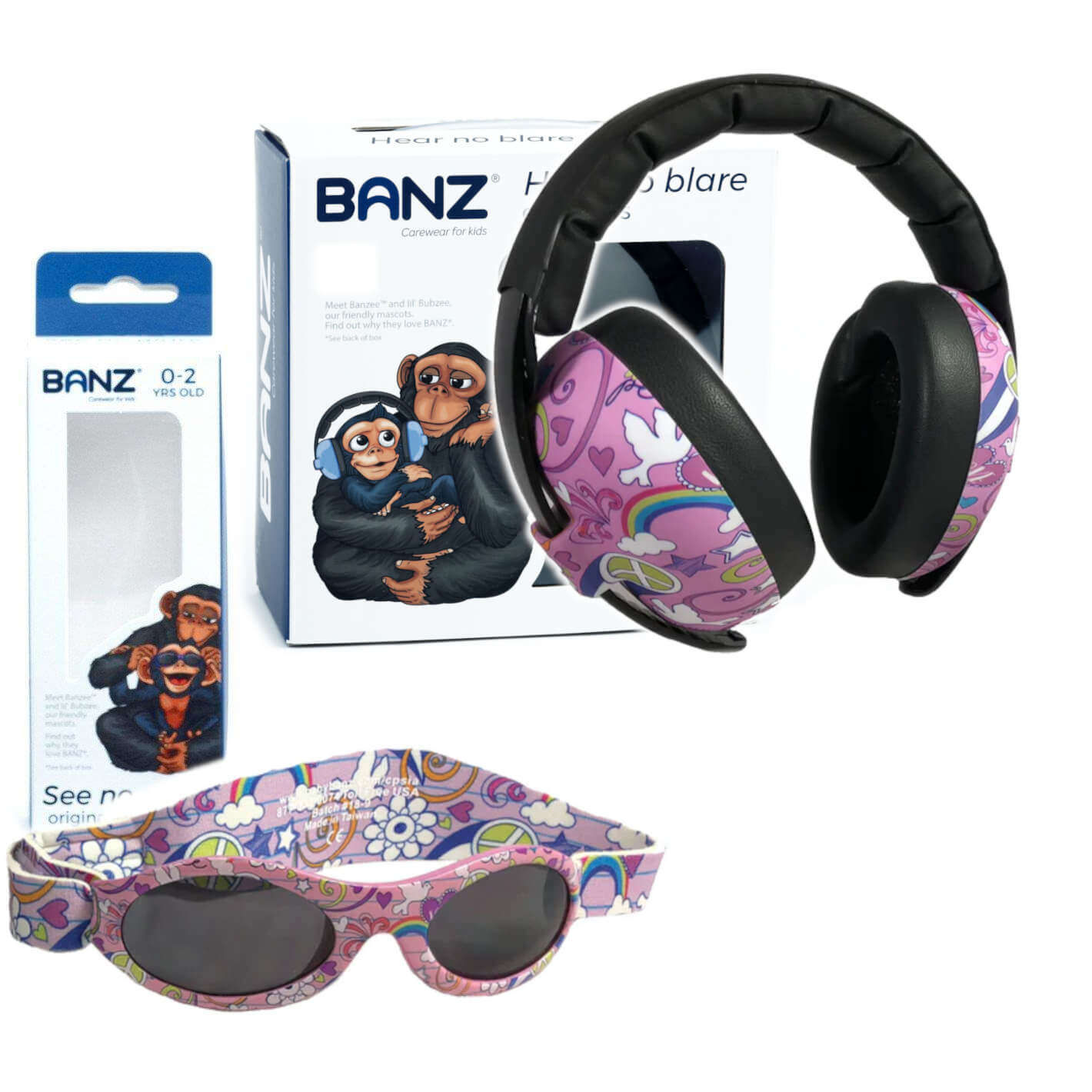 Słuchawki ochronne do 3lat + okulary UV400 0-2lat Peace