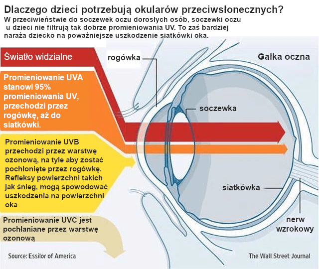 Oczy dzieci nie filtrują tak dobrze promieniowania UV jak u dorosłych.