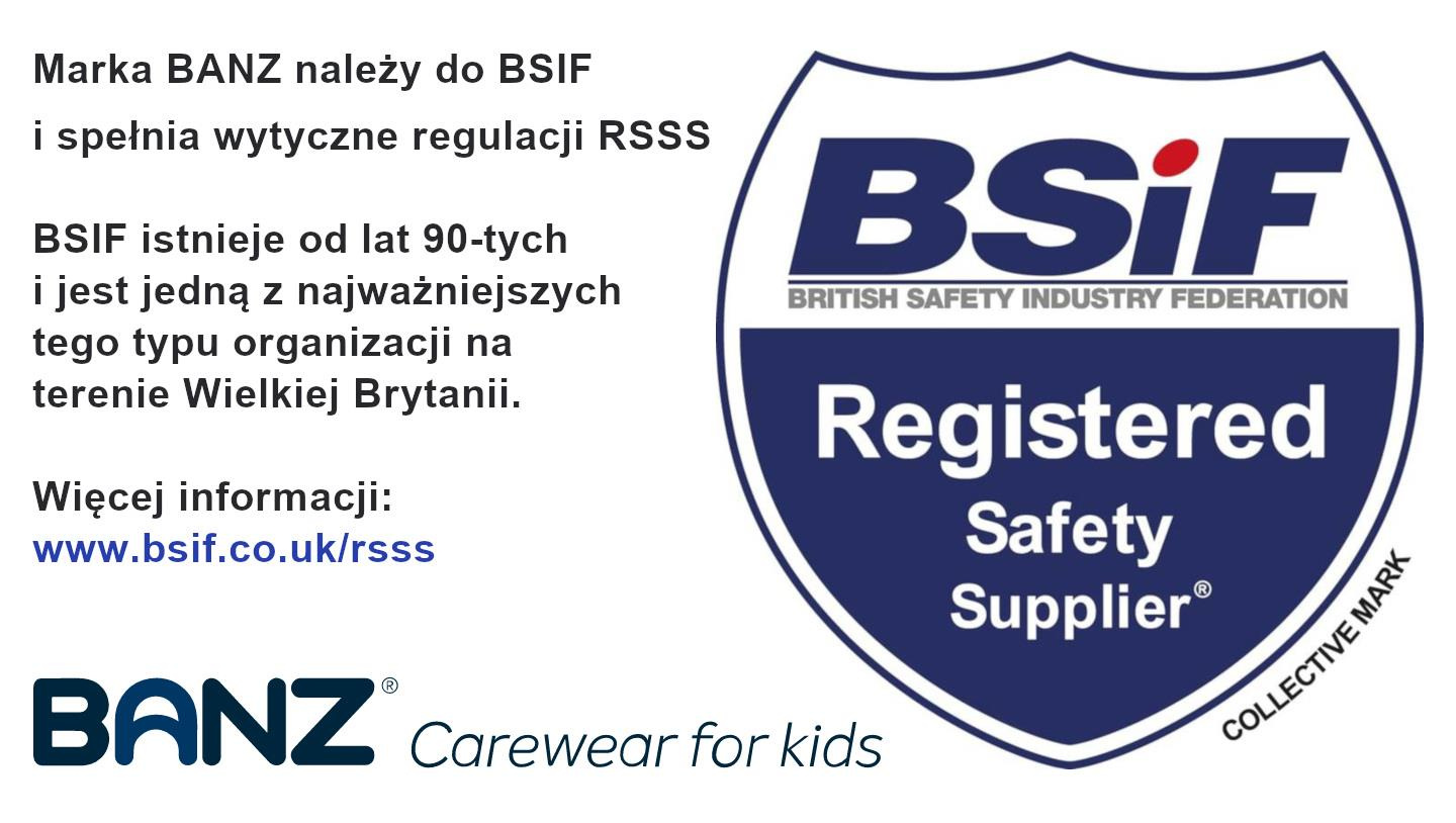 Marka BANZ należy do BSIF (Brytyjska Federacja Przemysłu Bezpieczeństwa - ang. British Safety Industry Federation) i spełnia wytyczne regulacji RSSS (Registered Safety Supplier Scheme) ustanowionej przez tę organizację. BSIF istnieje od lat 90-tych i jest jedną z najważniejszych tego typu organizacji w Wielkiej Brytanii. Szczegółowe informacje można znaleźć na oficjalnej stronie https://www.bsif.co.uk/rsss/