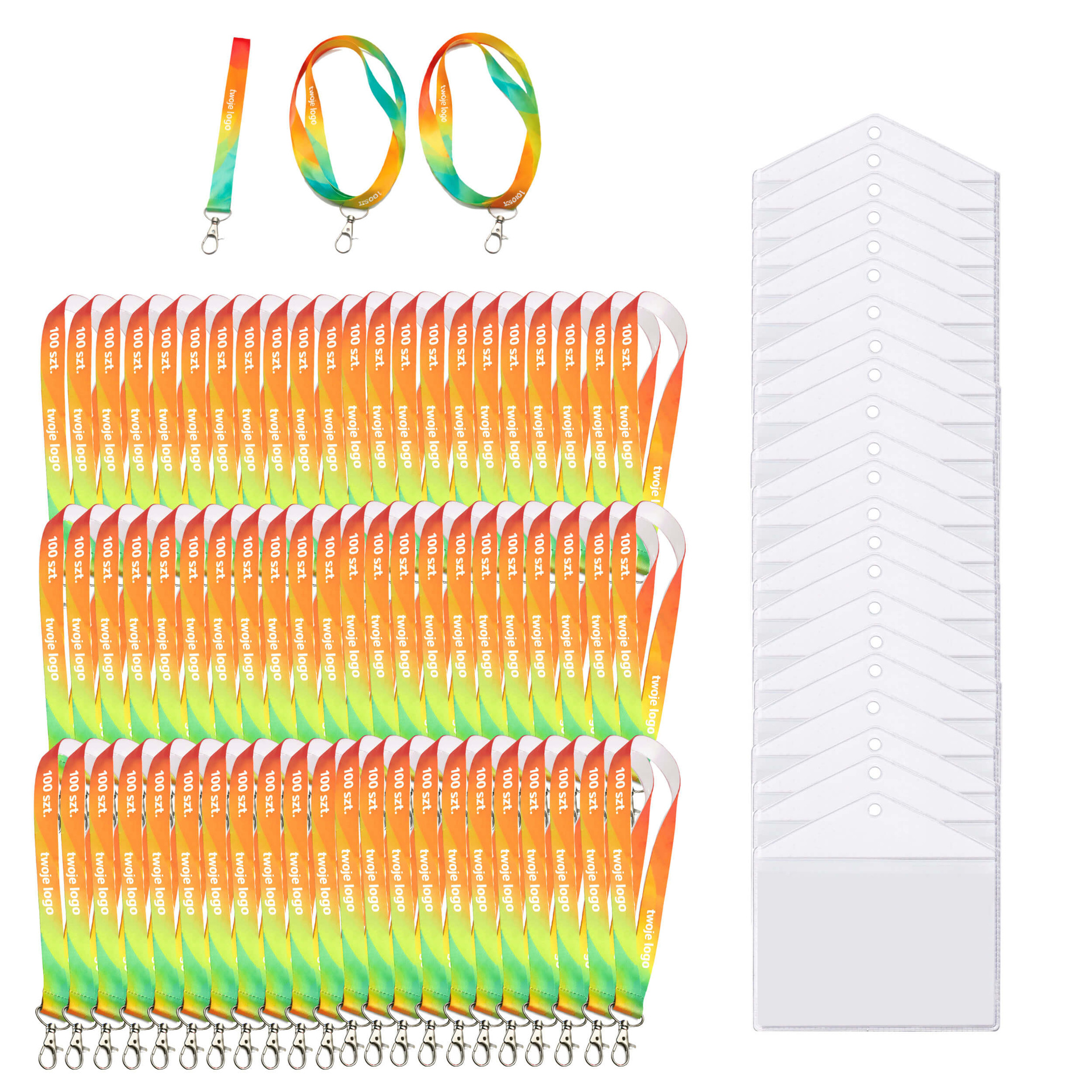 🎯 Smycze sublimacyjne 20 mm z nadrukiem 100 szt. + identyfikator 100x65mm 100 szt.