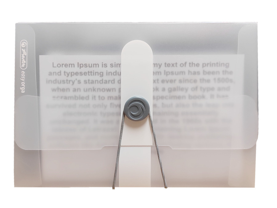 - Trwałe zamknięcie na gumkę chroni dokumenty przed wypadnięciem
