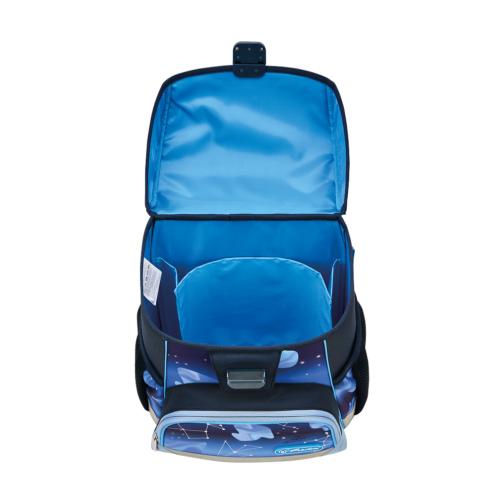 Tornister Herlitz Cosmic Explorer z astronautą to idealny wybór dla młodych odkrywców i miłośników kosmosu. Lekki, ergonomiczny i bezpieczny tornister zapewnia wygodę noszenia, dobrą organizację przyborów i widoczność po zmroku – wszystko, czego potrzebuje dziecko na co dzień w szkole.