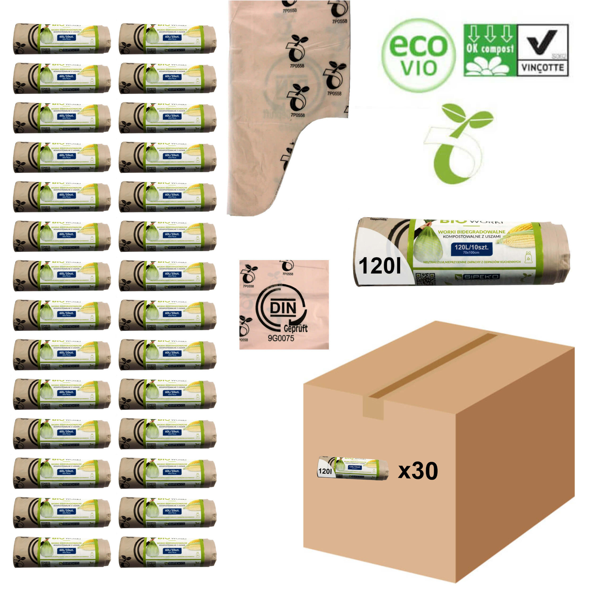 Worki biodegradowalne kompostowalne ATEST 120L 10szt (30 opakowania)
