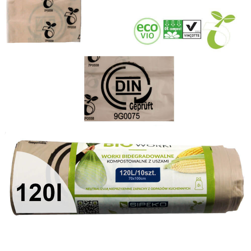 Worki biodegradowalne kompostowalne ATEST 120L 300 sztuk 30 rolek SIPEKO