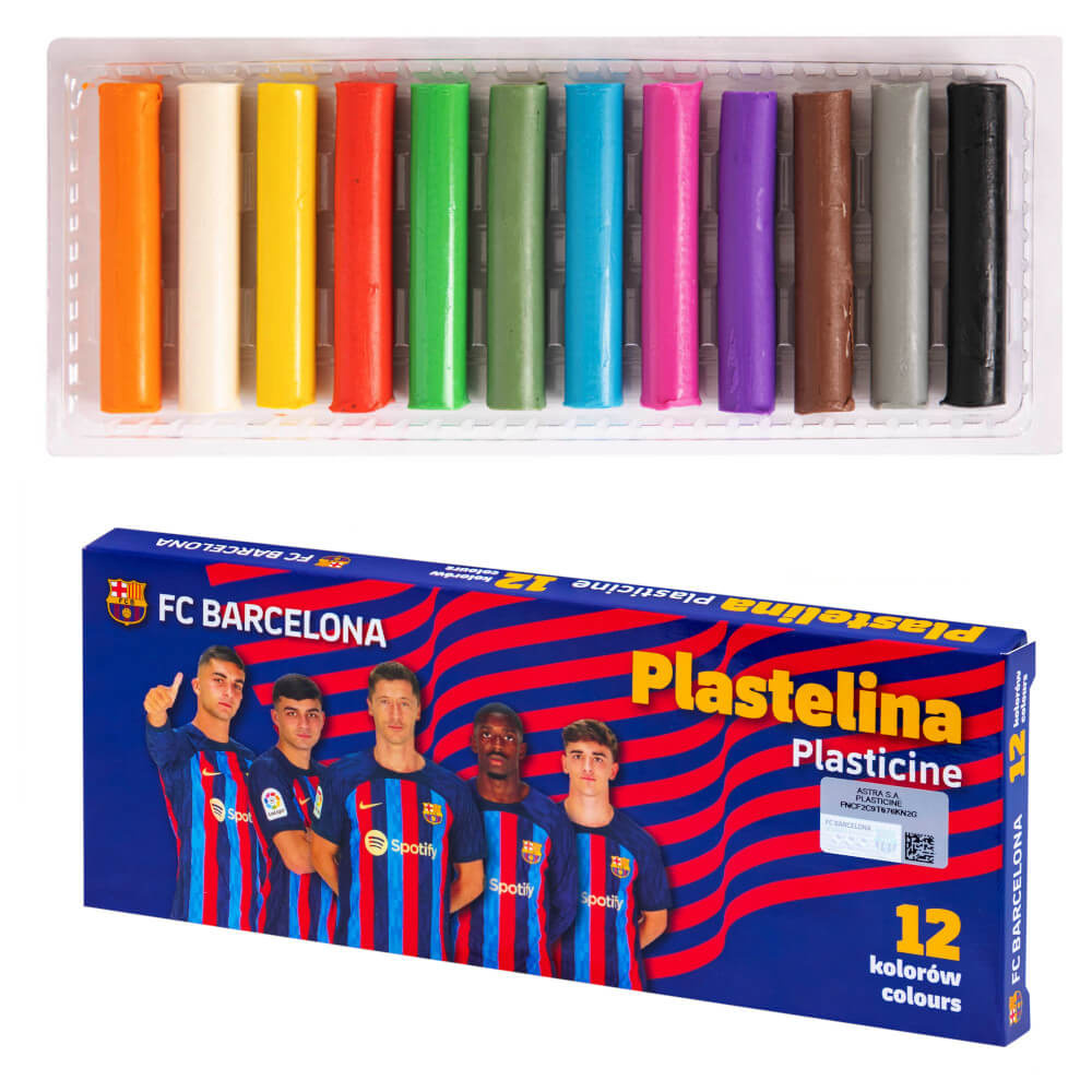 🧸 Plastelina szkolna FC Barcelona – 12 kolorów, certyfikat CE i kontrola jakości Q