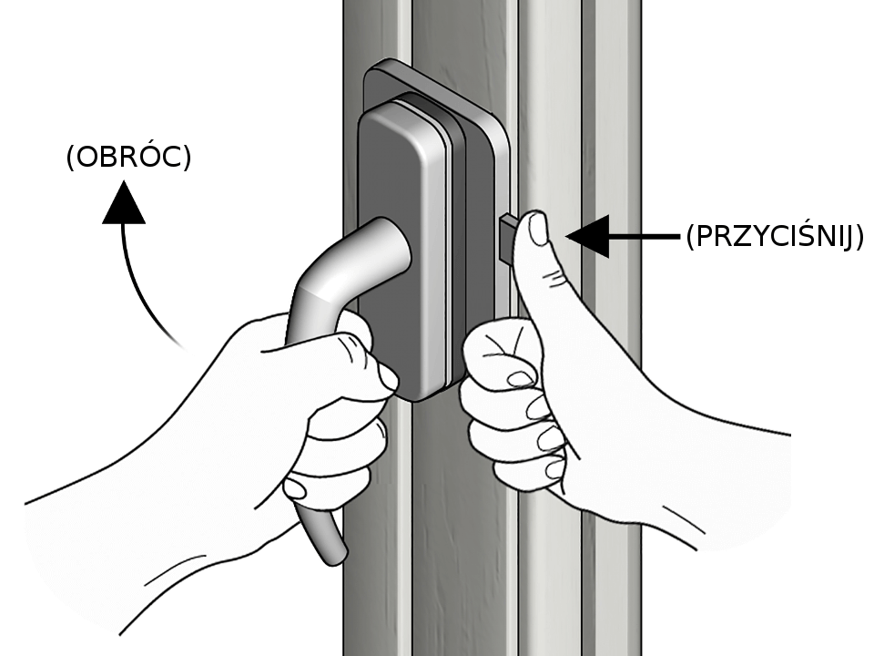- Po zamontowaniu zabezpieczenia aby otworzyć lub zamknąć okno należy mocno wcisnąć i przytrzymać przycisk z boku zamka. Czynność ta nie sprawia większego kłopotu osobom dorosłym lecz dla małego dziecka jest wystarczającą przeszkodą