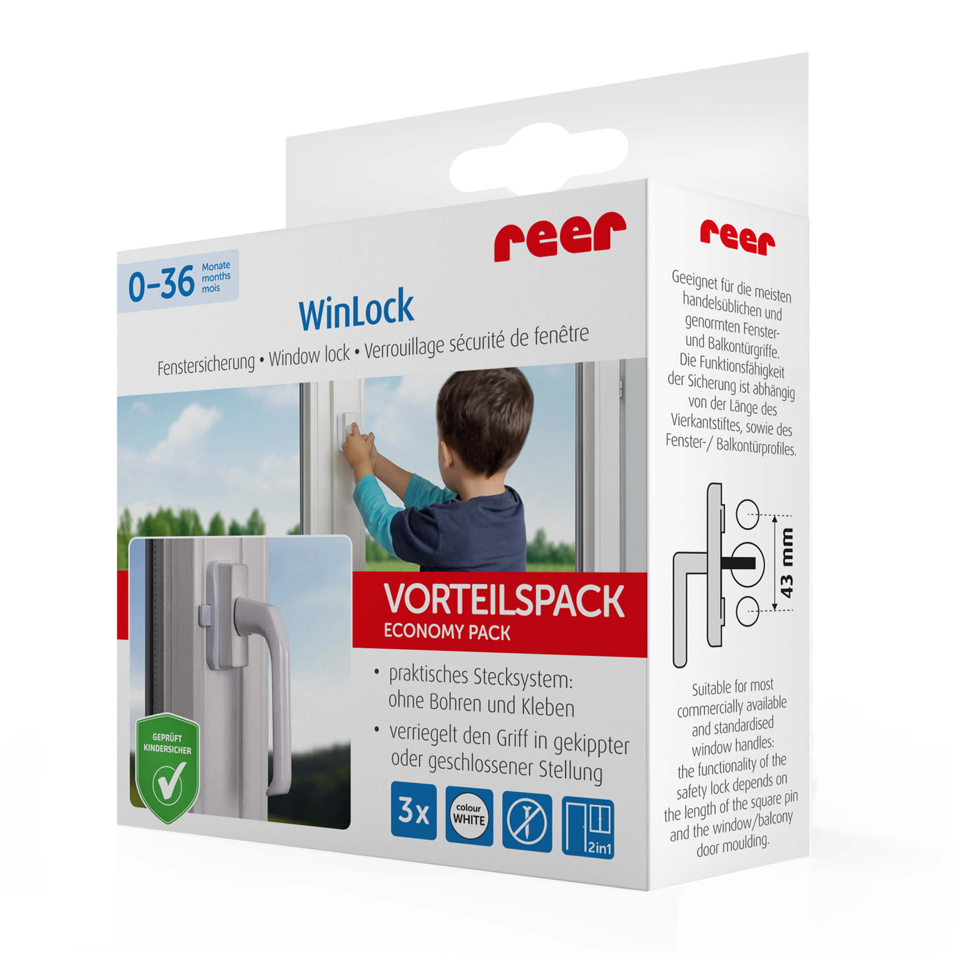 Zabezpieczenie klamki okna drzwi balkonowych 3szt REER