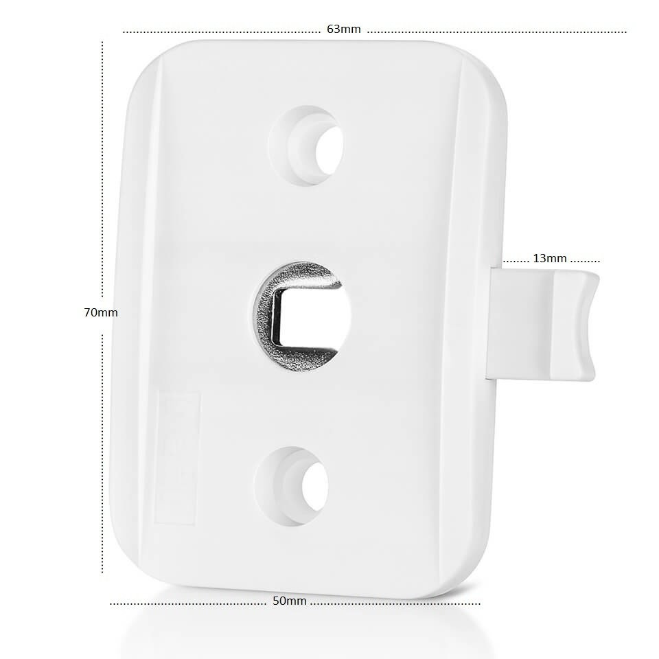 - Po zamontowaniu to zabezpieczenie odsuwa klamkę od okna o 6mm. Dlatego przed zakupem upewnij się, że trzpień klamki jest na tyle długi, aby po zamontowaniu zabezpieczenia trzpień nadal wchodził w zamek okna.