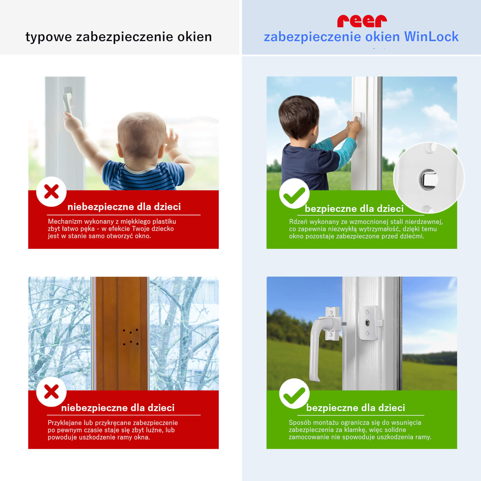 - Chroni dziecko przed groźnym upadkiem z okna oraz nie pozwala Cię zatrzasnąć gdy jesteś na balkonie, a Twoje dziecko jest po drugiej stronie drzwi