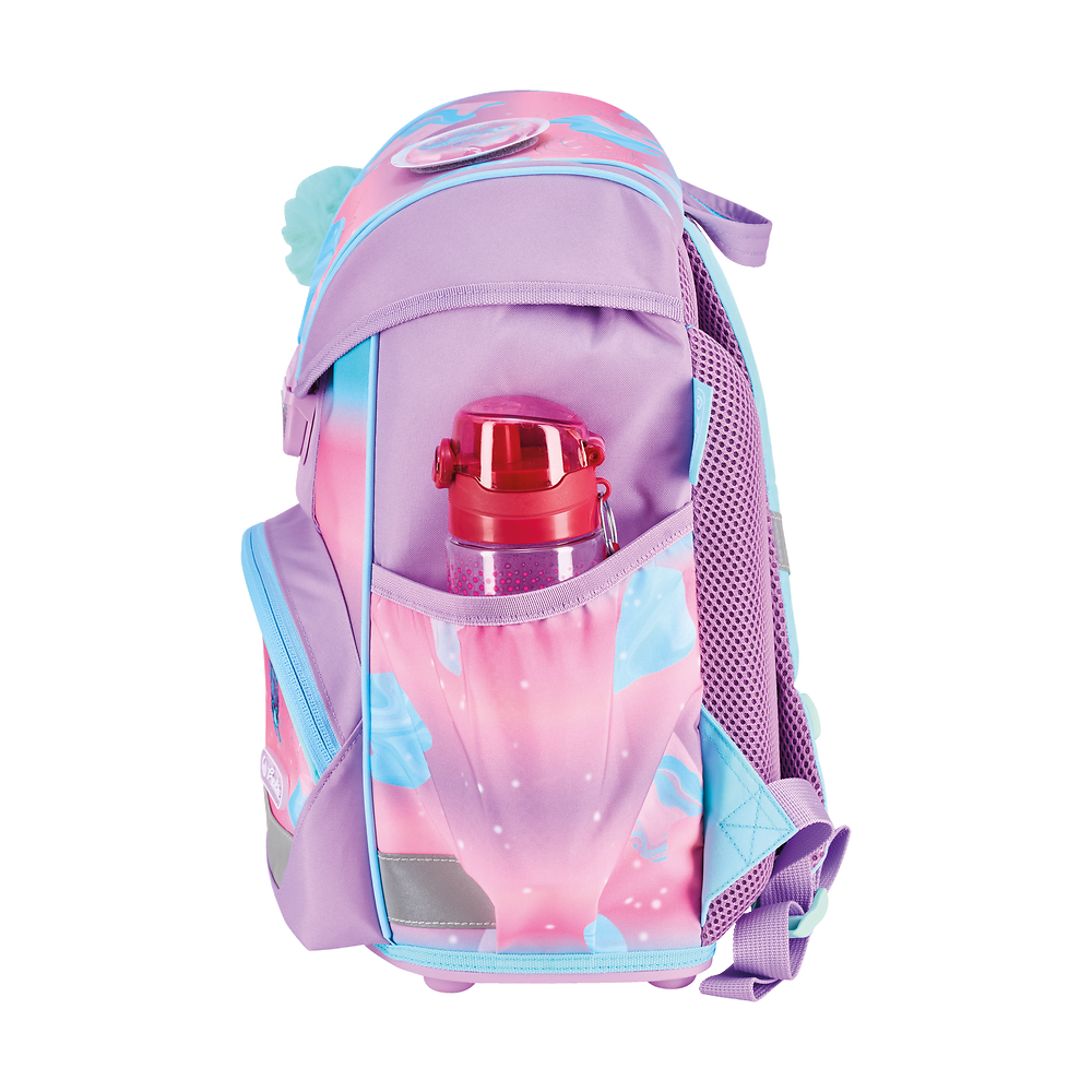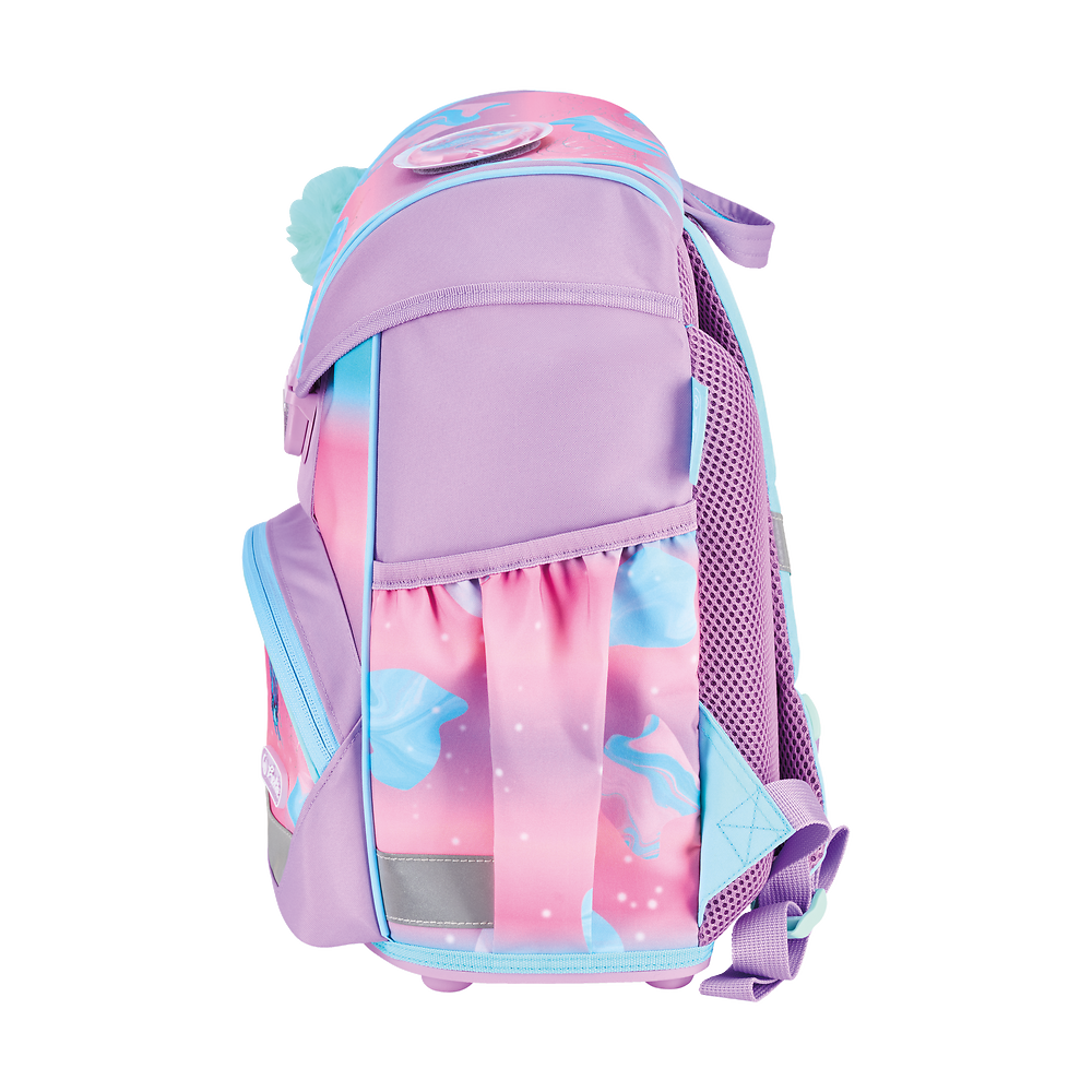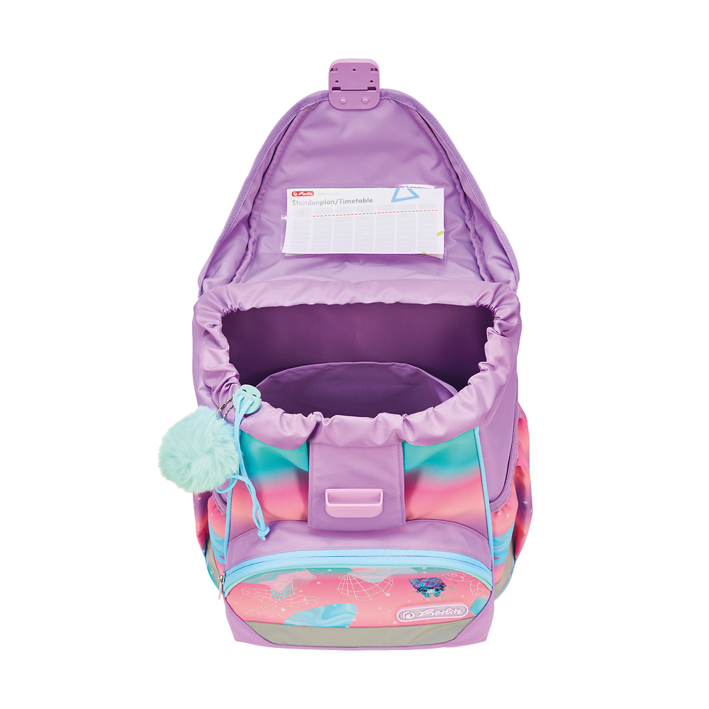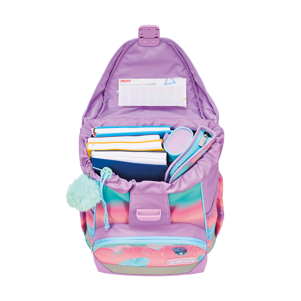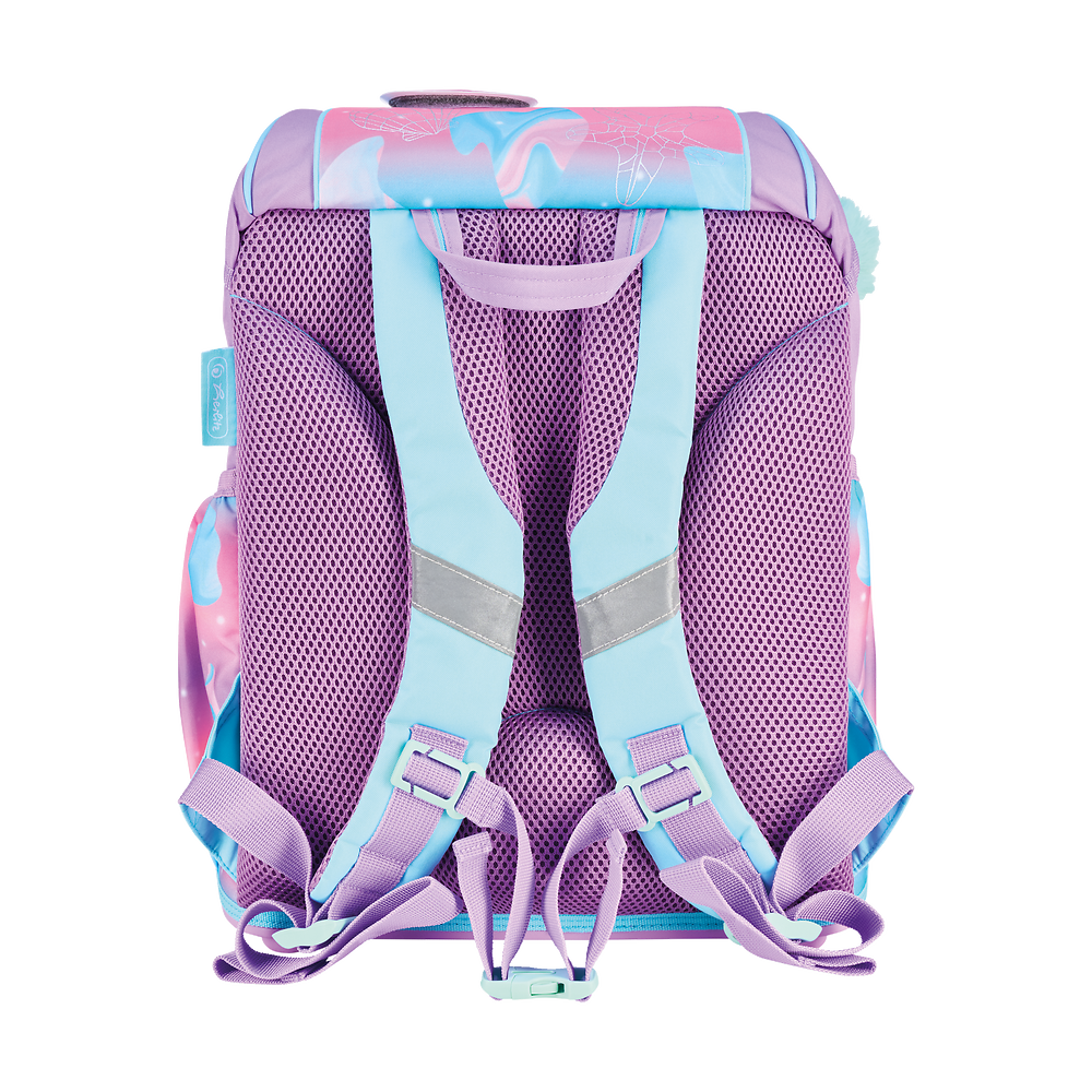 Zestaw szkolny Herlitz Ultralight Plus Ocean Lights to lekki i funkcjonalny komplet dla ucznia klas 1–3, wyróżniający się uroczym motywem koników morskich. Zestaw zawiera tornister, dwa piórniki i worek, a także dodatki – puszysty brelok i plakietkę, które dodają całości wyjątkowego charakteru. Idealny wybór na dobry start szkolnej przygody!