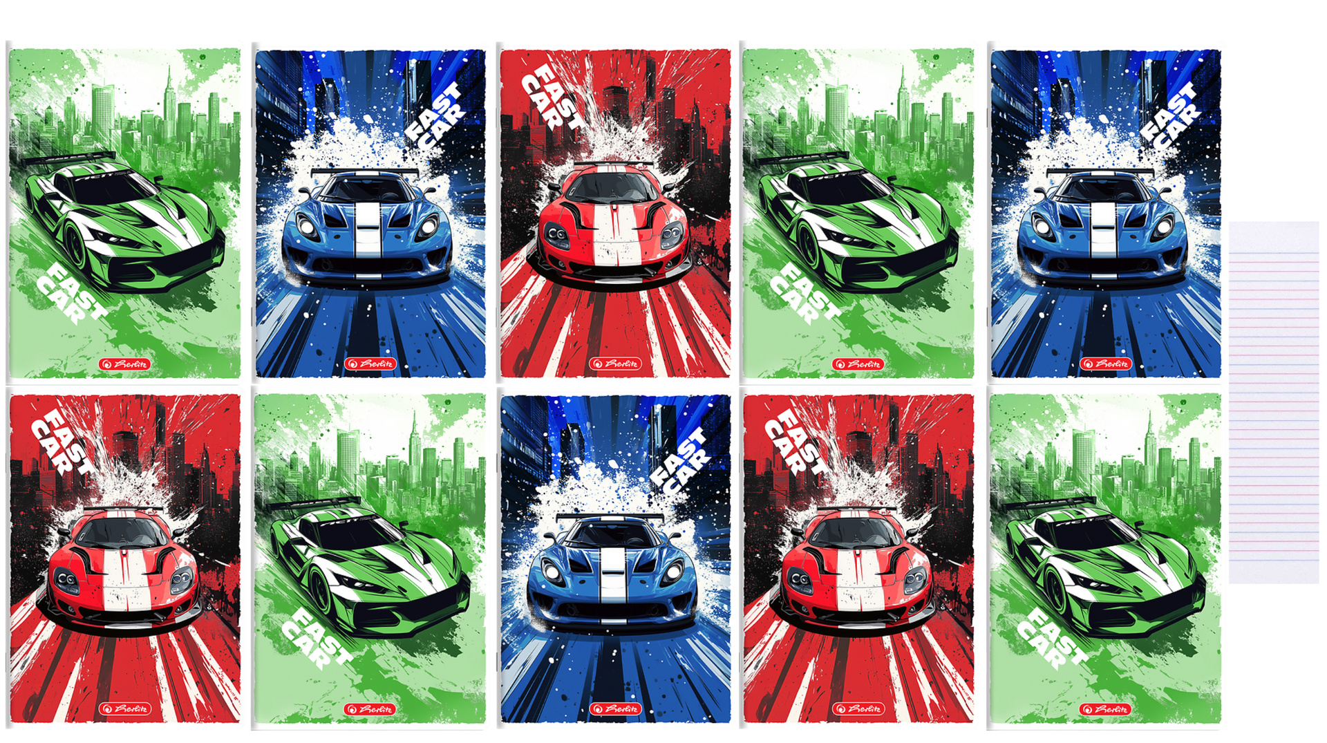 📷 Wzory okładek: 5 motywów z kolekcji Fast Car (mogą się powtarzać)