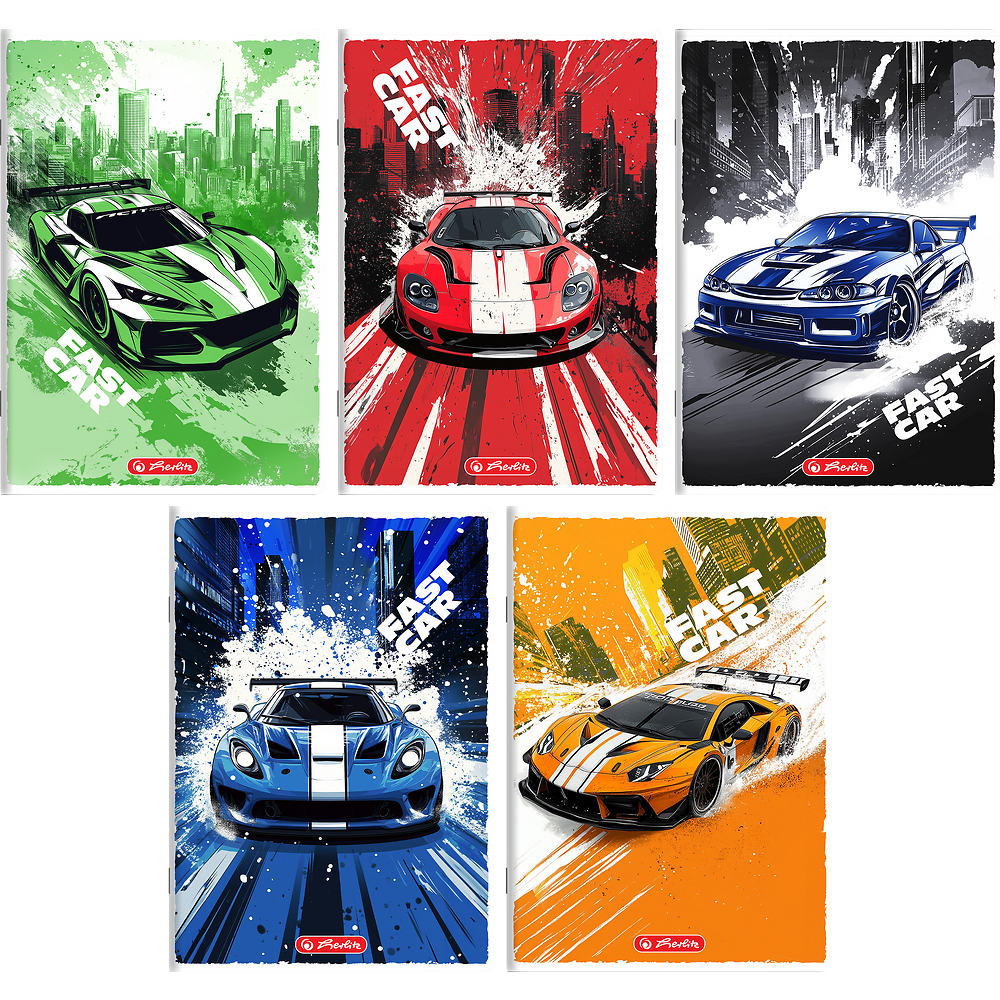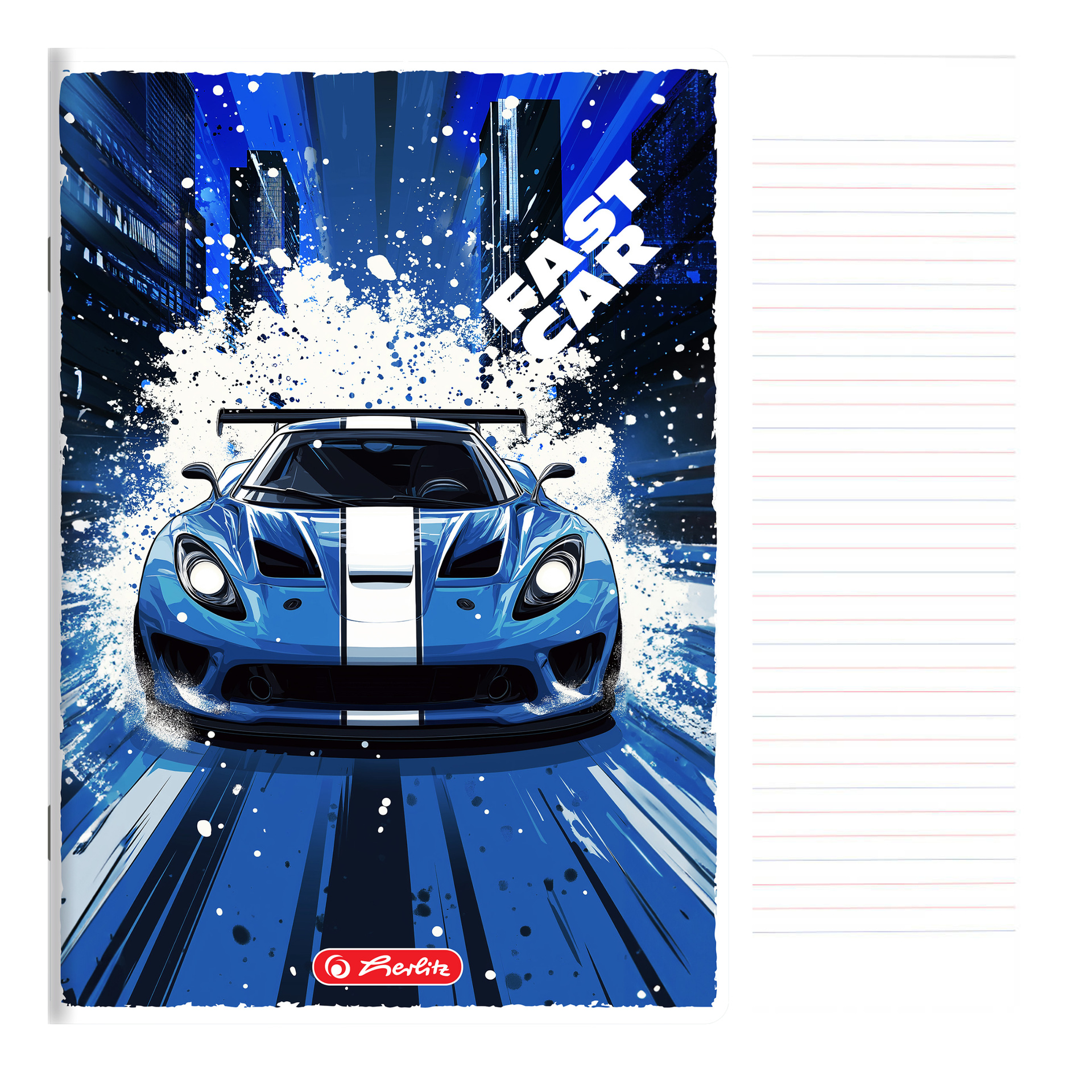 📝 Zeszyt A5 Herlitz Fast Car – 16 kartek, kolorowa linia, 10 sztuk
