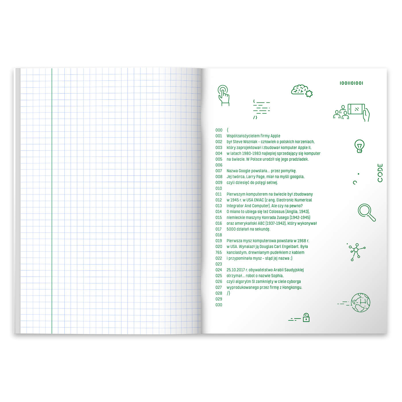 - Zeszyt tematyczny, dedykowany dla konkretnego przedmiotu: informatyki, format A5 (150mm x 210mm)